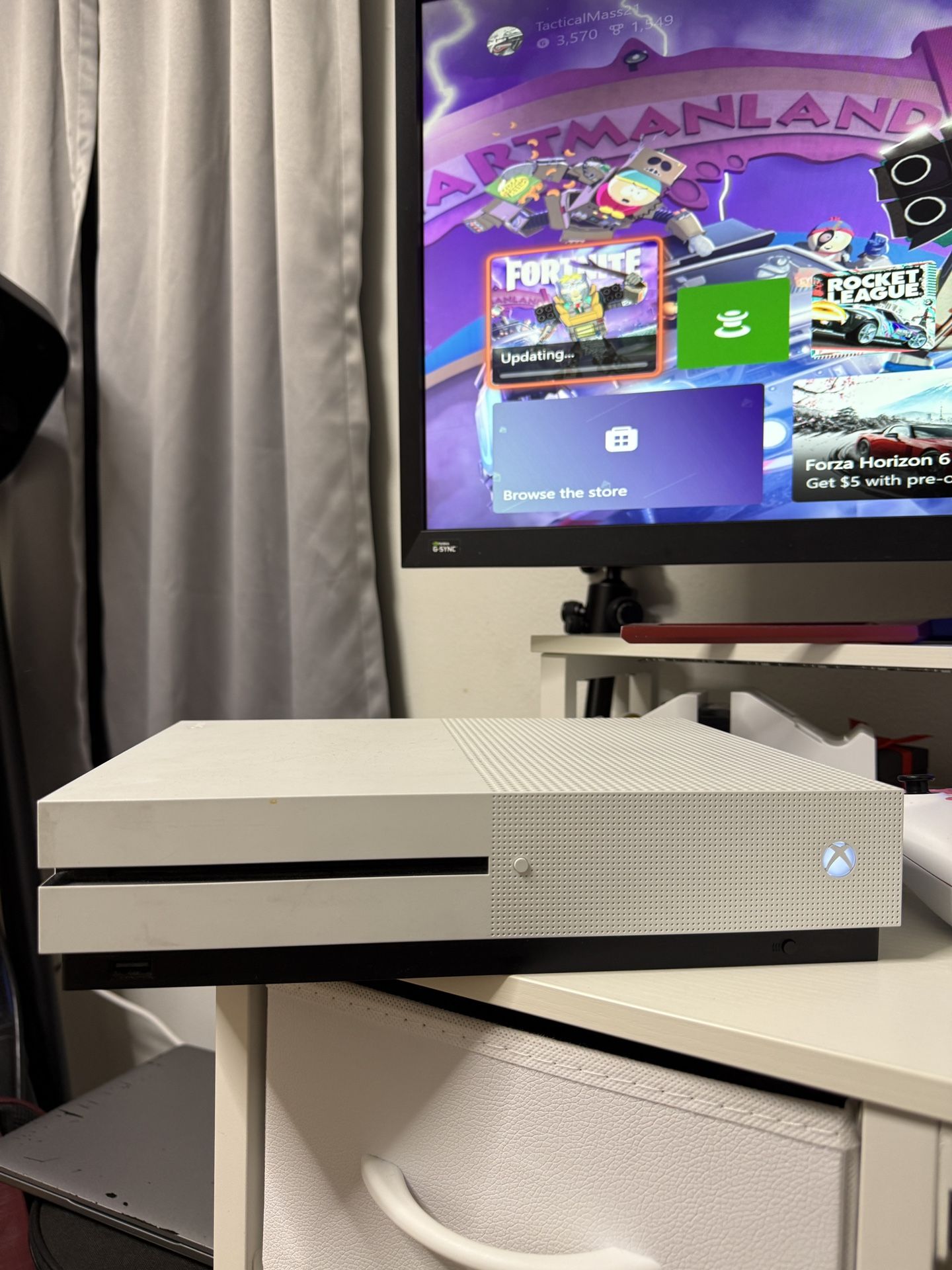Xbox one S. Works great no problems, comes with the power cord and controller. I have the original box too if you want it.
