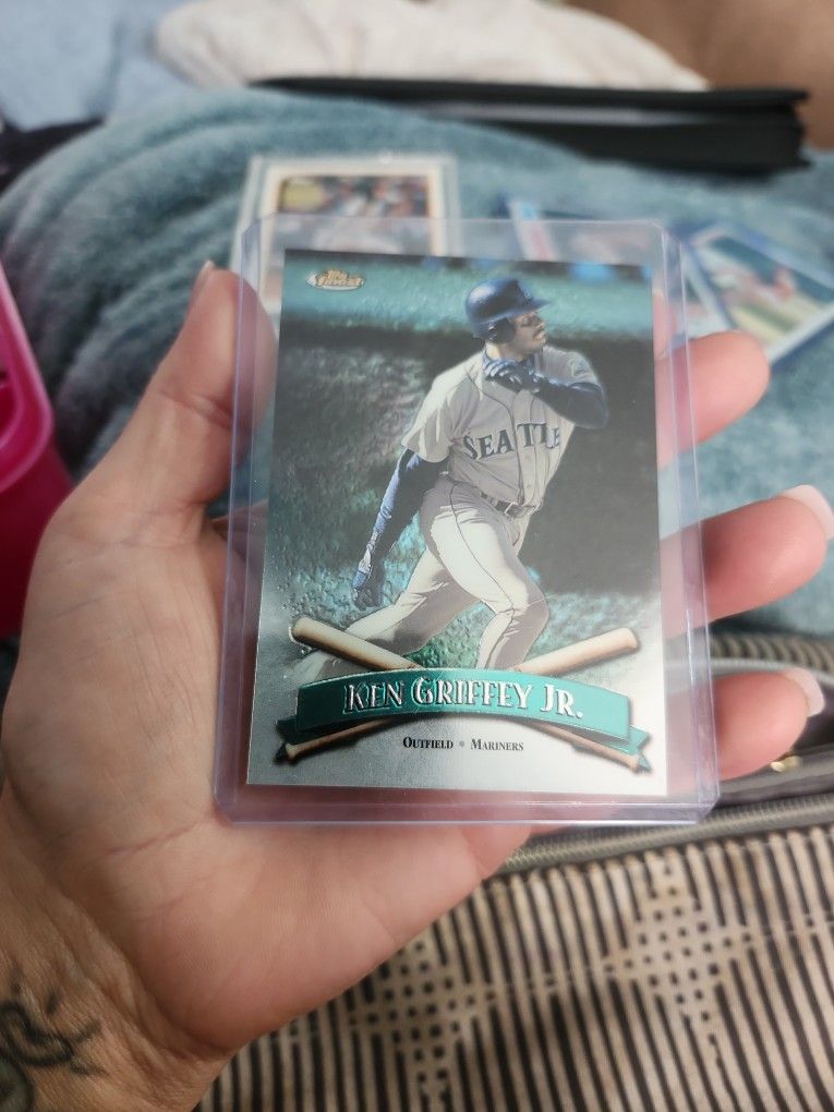 The 1998 Topps Finest Ken Griffey Jr #100 card w/ protective cover is a highly sought-after collectible in the sports trading card market. This baseball card features the legendary player from the Seattle Mariners during the 1998 season. As part of the Topps Finest set, this card is a parallel variety with a protective finish, adding to its unique appeal. With a mint condition, this card is a valuable piece for any Major League Baseball fan or trading card enthusiast.