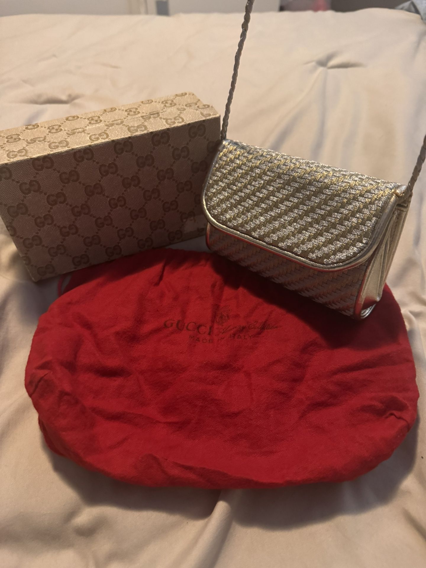 Gucci *rare* braided metal metallic leather mini crossbody bag. Pre-loved and in excellent condition. Includes original dustbag and box. Pictures do no justice for this bag. ***All my items are authentic***
