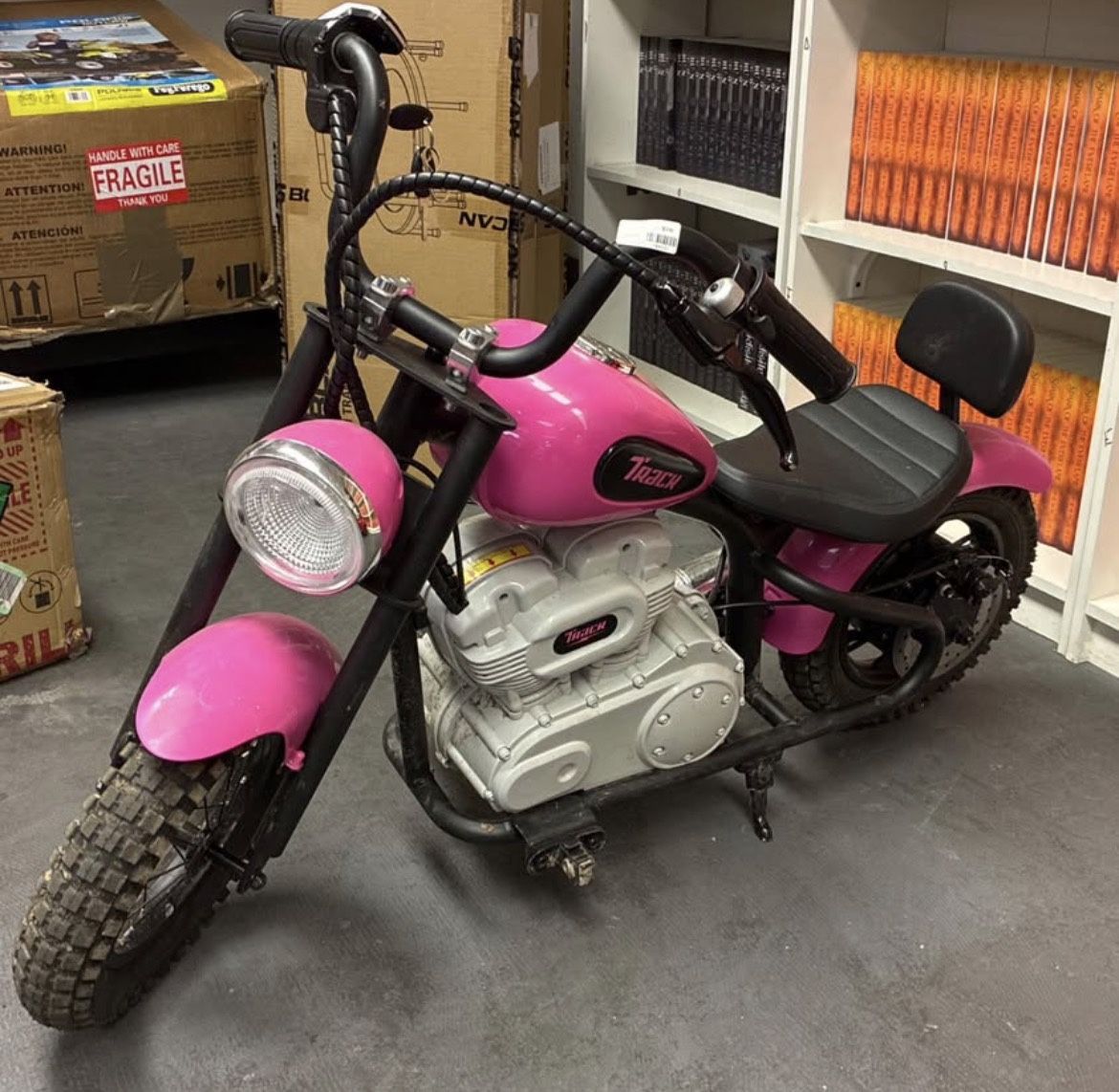 Sold As-Is, as shown in the photos the bike is in used condition, this is how it arrived to us from our liquidation pallet. The left peg is broken, however easily replaceable. Children’s electric ride-on motorcycle, designed to look like a mini chopper goes up to about 10MPH. Bike is worn in dirt, no box.