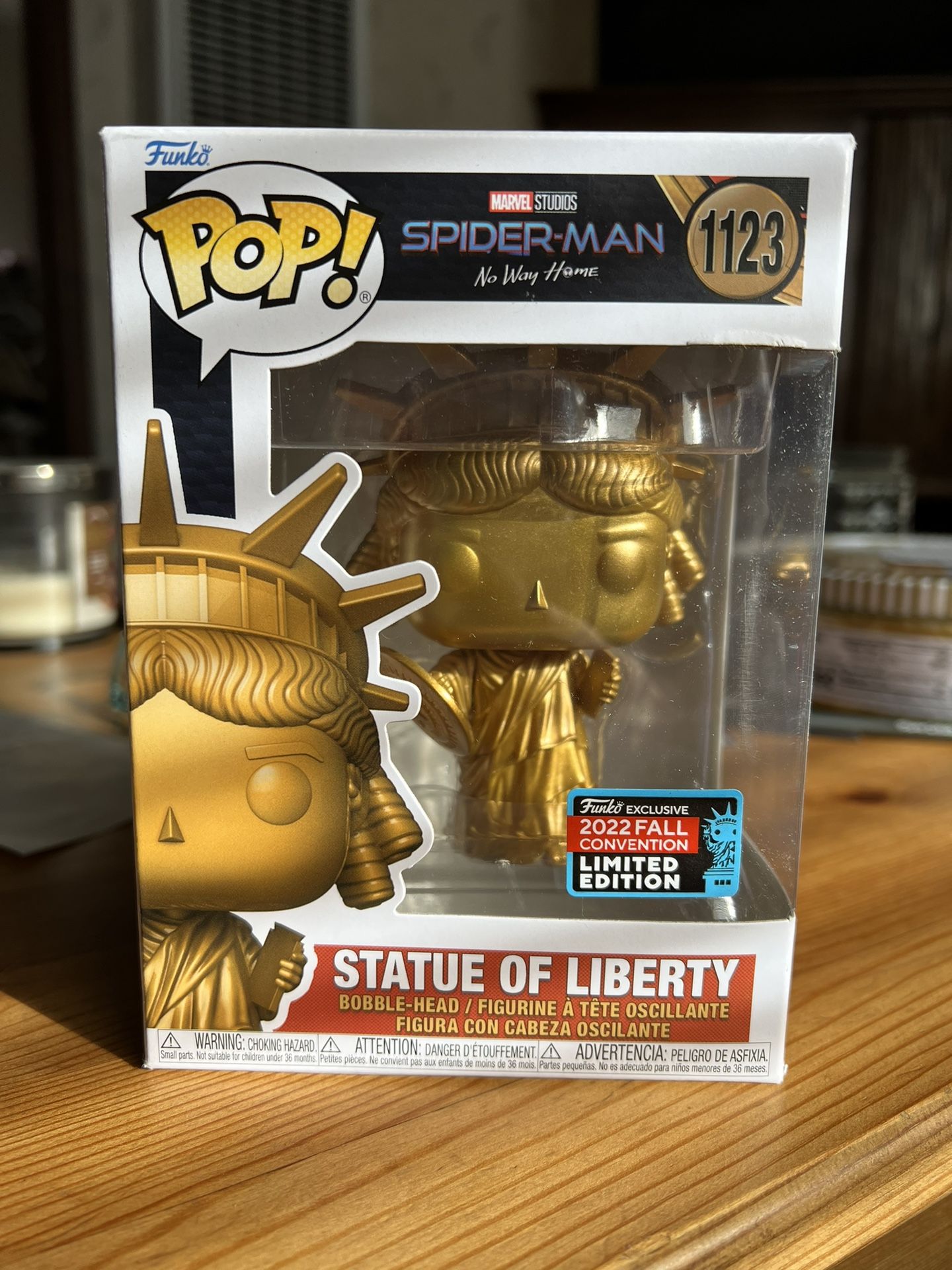 Gold Statue of Liberty pop from the marvel movie Spider-Man!
