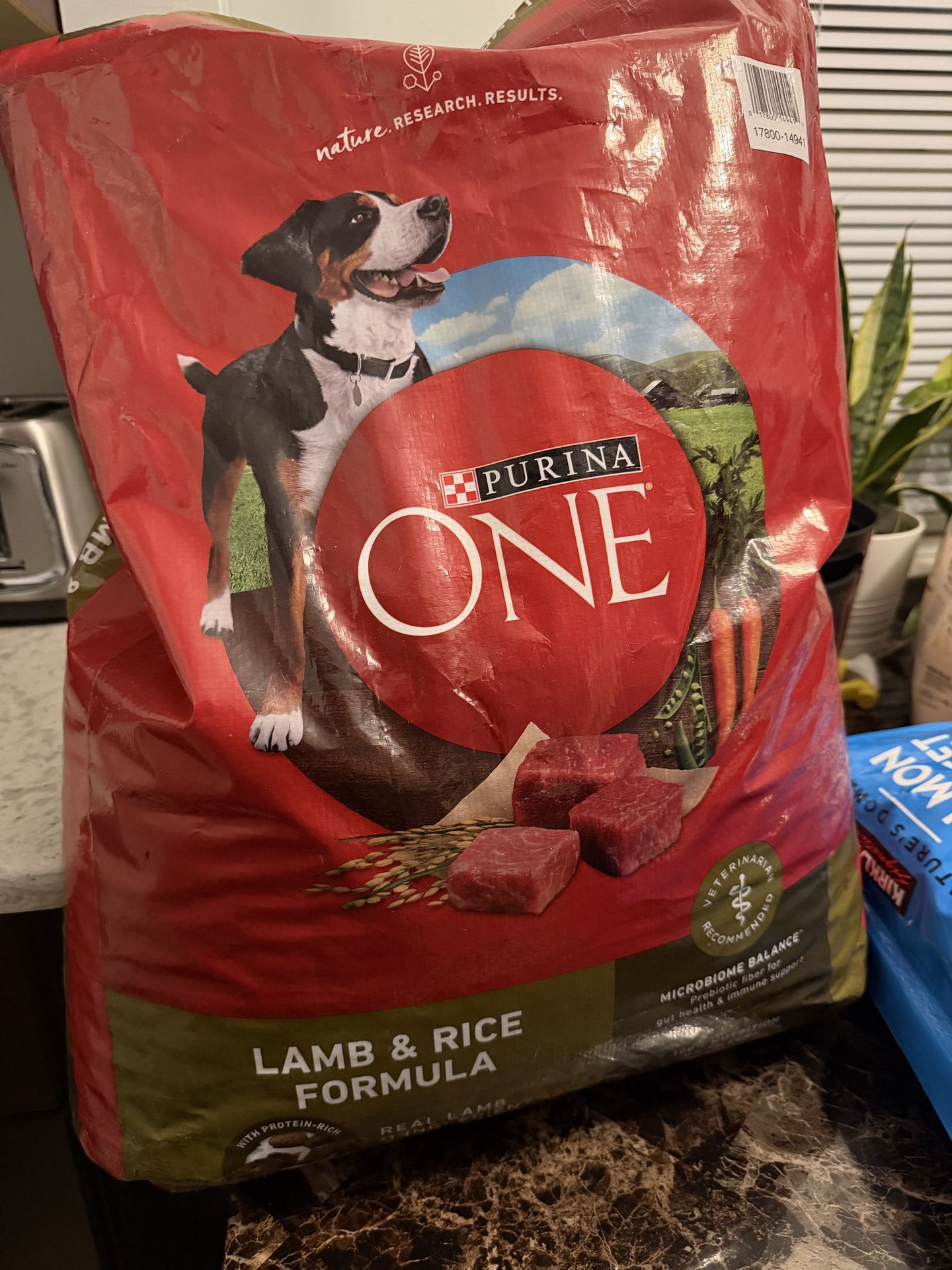 Purina One Lamb and rice 31 pounds unopened bag. Expires JUL 2026. Had to change my dogs food as per vet so don’t need this.
