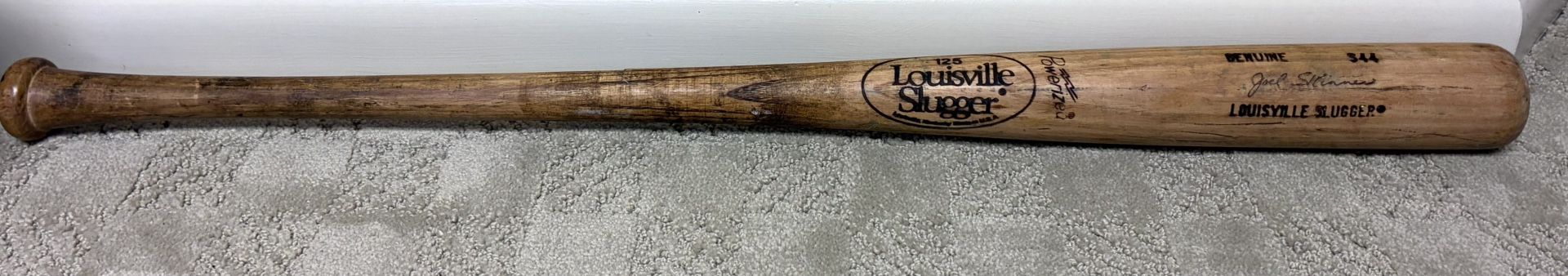 This 125 Louisville Sluger S44 Baseball Bat was gamed used by Catcher Joel Skinner with the Cleveland Indians in the 1991 season. The bat has no cracks. Skinner played 9 years in the MLB 3 years each with the Chicago White Sox, New York Yankees, and Cleveland Indians playing in 564 games. He played 99 games with Cleveland in 1991 as their primary catcher. He would later coach within the Cleveland Indians Organization from 1995 until 2009.