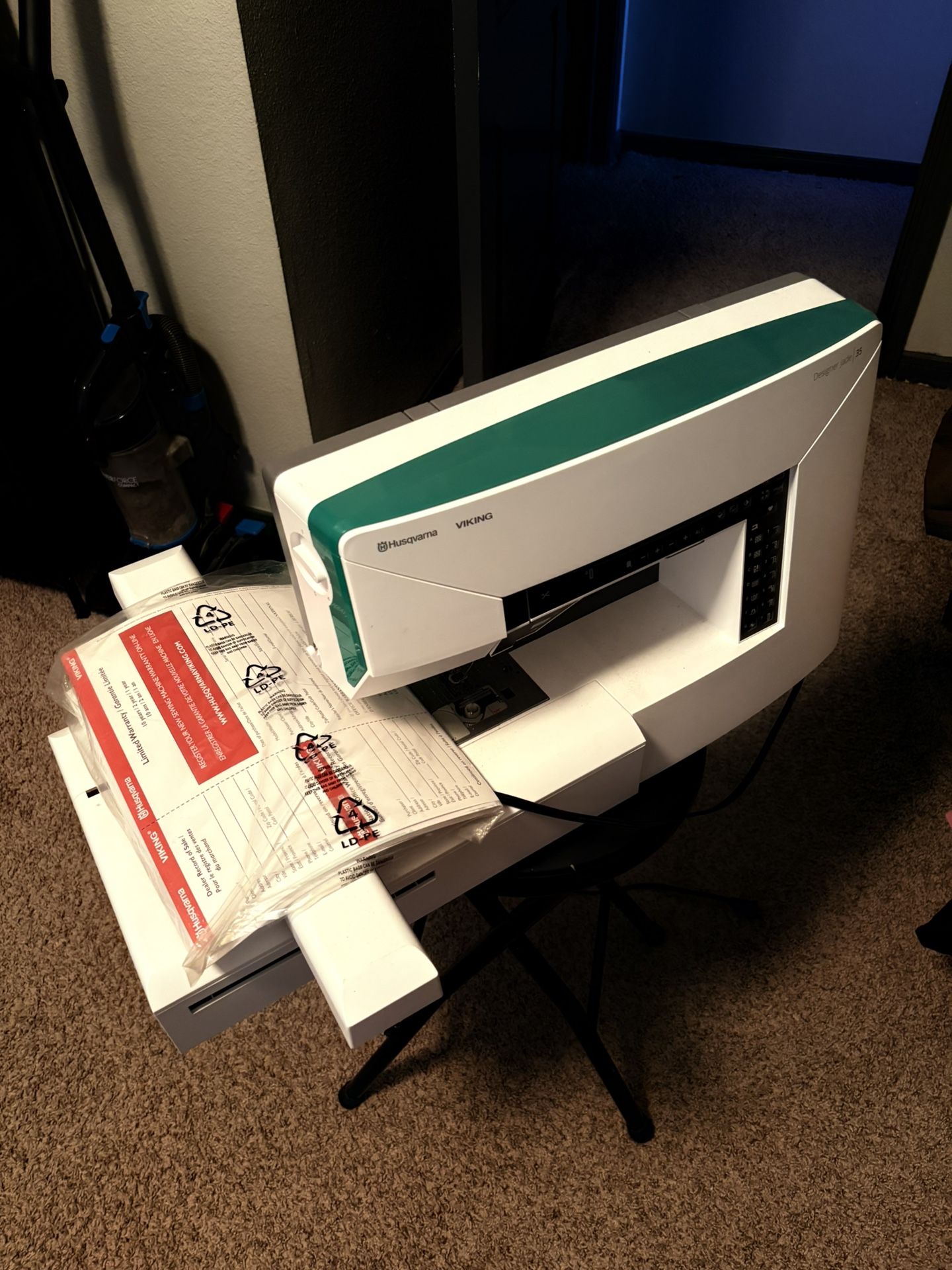 Embroidery/ Sewing machine Nothing wrong , just letting this one go because I don’t use it often. No box, comes with extra threads, needles, etc. asking $500. $1300+ value