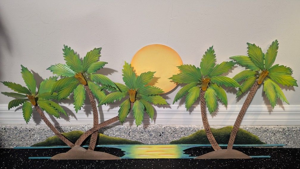 Tropical Palm Tree Sunset Metal Wall Art - Indoor/Outdoor 42.5" W x 17.75" H $75 Cash only. Thanks for looking and have a great day!