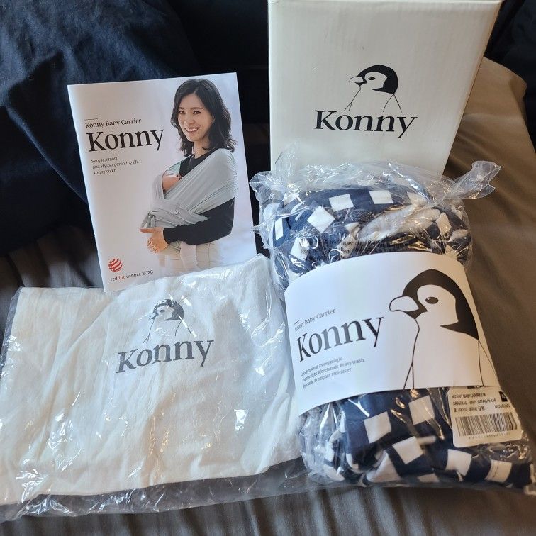 Brand New Konny Baby Carrier size XS color Navy Gingham. Reg $59.99. Make me an offer . No low ball offers please.