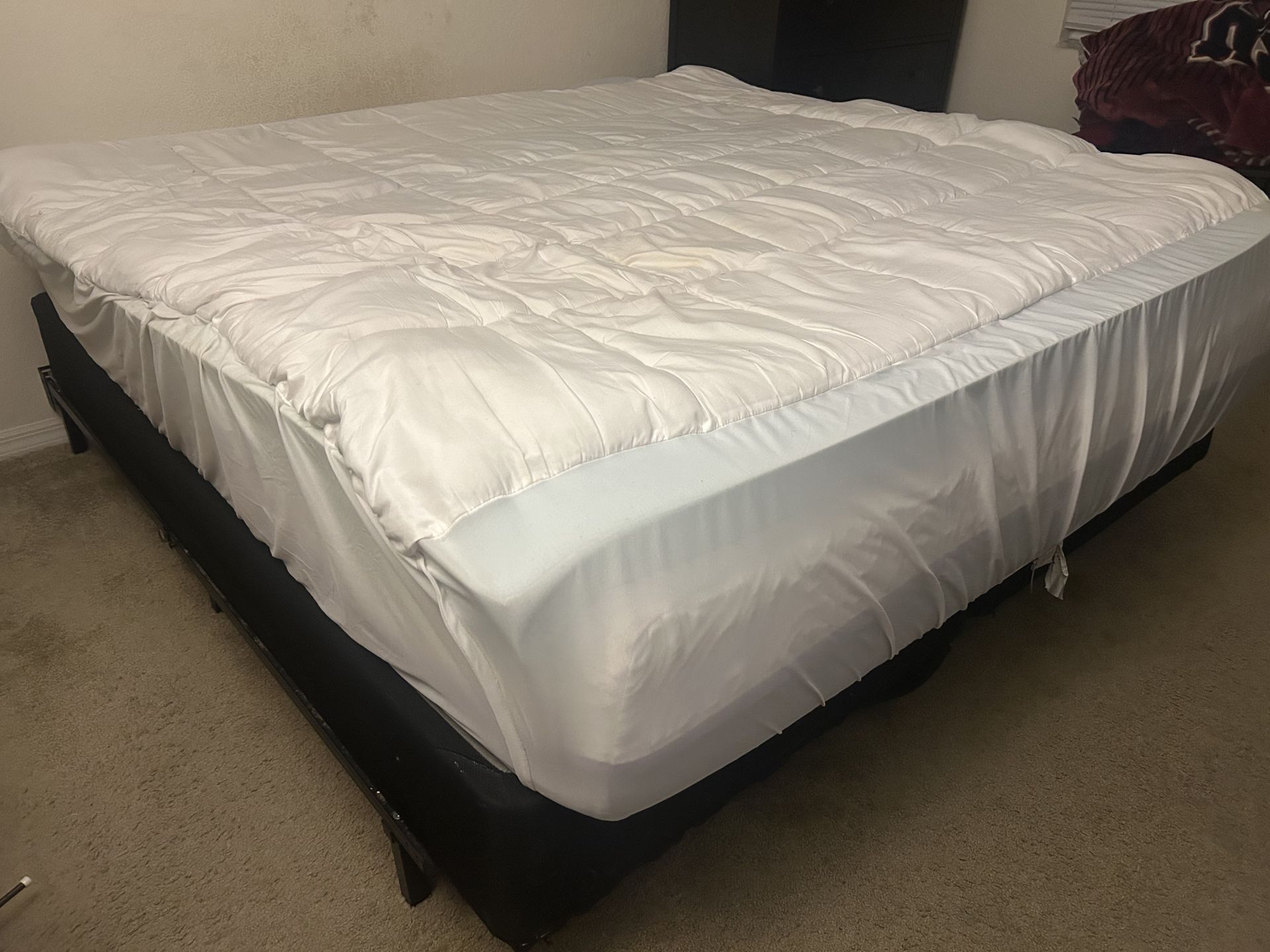 California king size mattress with mattress pad and foam topper included. Very comfy! No headboard, but there’s a frame. Must be able to pick up and load yourself. Near UCF (2nd floor apartment).