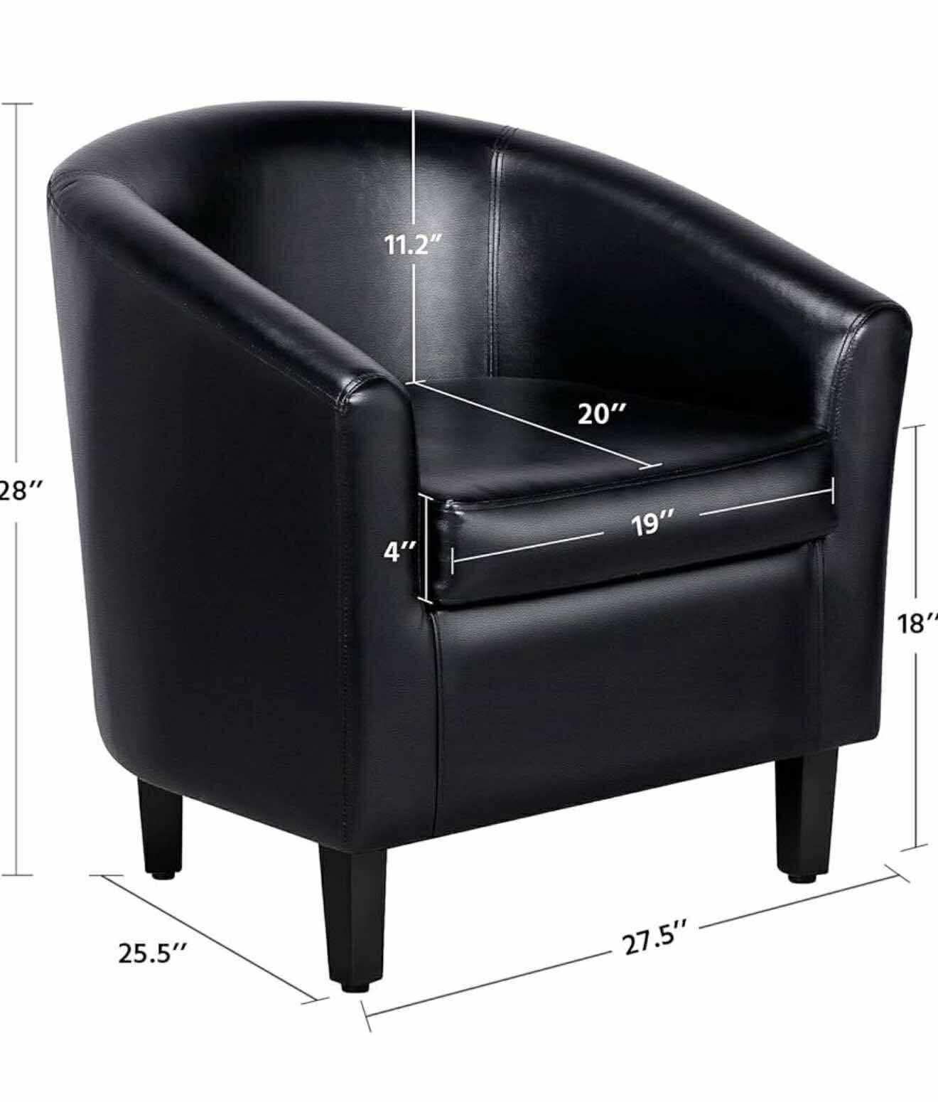 Office accent chair, faux black leather P-7