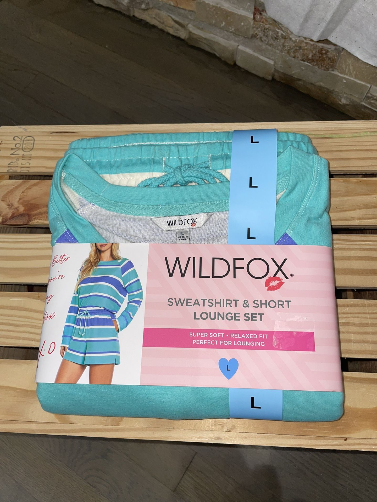 New Wildfox Sweatshirt & Short Lounge Set Size Large Blue stripe Super soft Relaxed fit Perfect for lounging
