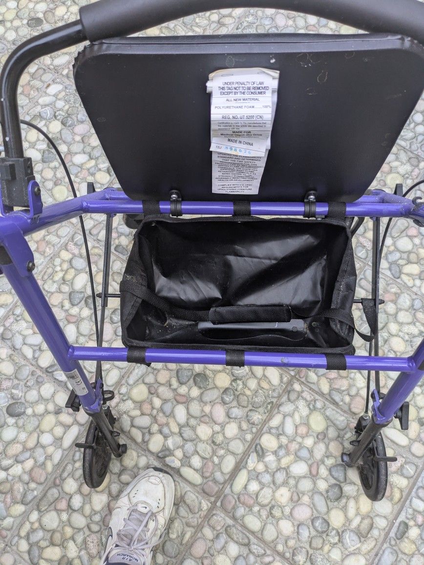 Drive Medical 10257BL-1 4 Wheel Rollator Walker With Seat, Steel Rolling Walker, Height Adjustable, Wheels, Removable Back Support, 300 Pound Weight Capacity, Blue