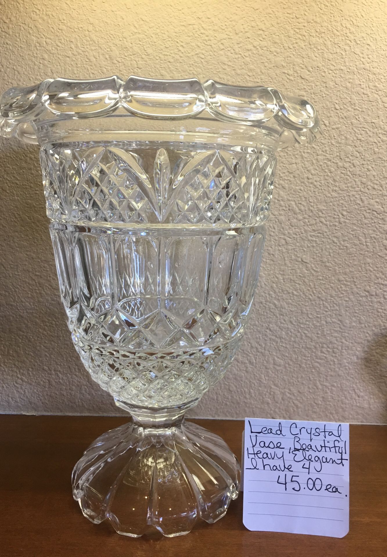 Lead crystal vase, very elegant , heavy, Must see. I have four can be use for flowers, or for wine or just by itself as a centerpiece. Gorgeous piece