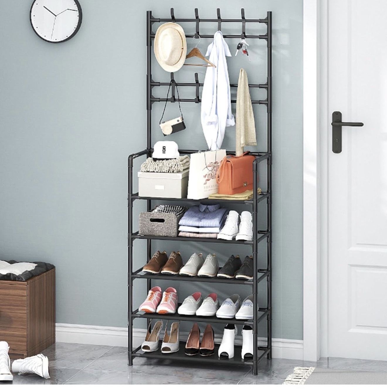 Industrial Coat Rack Stand with Shoe Storage 8 Hooks Hall Tree Free Standing Entryway nizer Stylish Coat Hanger for Living Room & Hallway 60 * 26 * 17 New in box