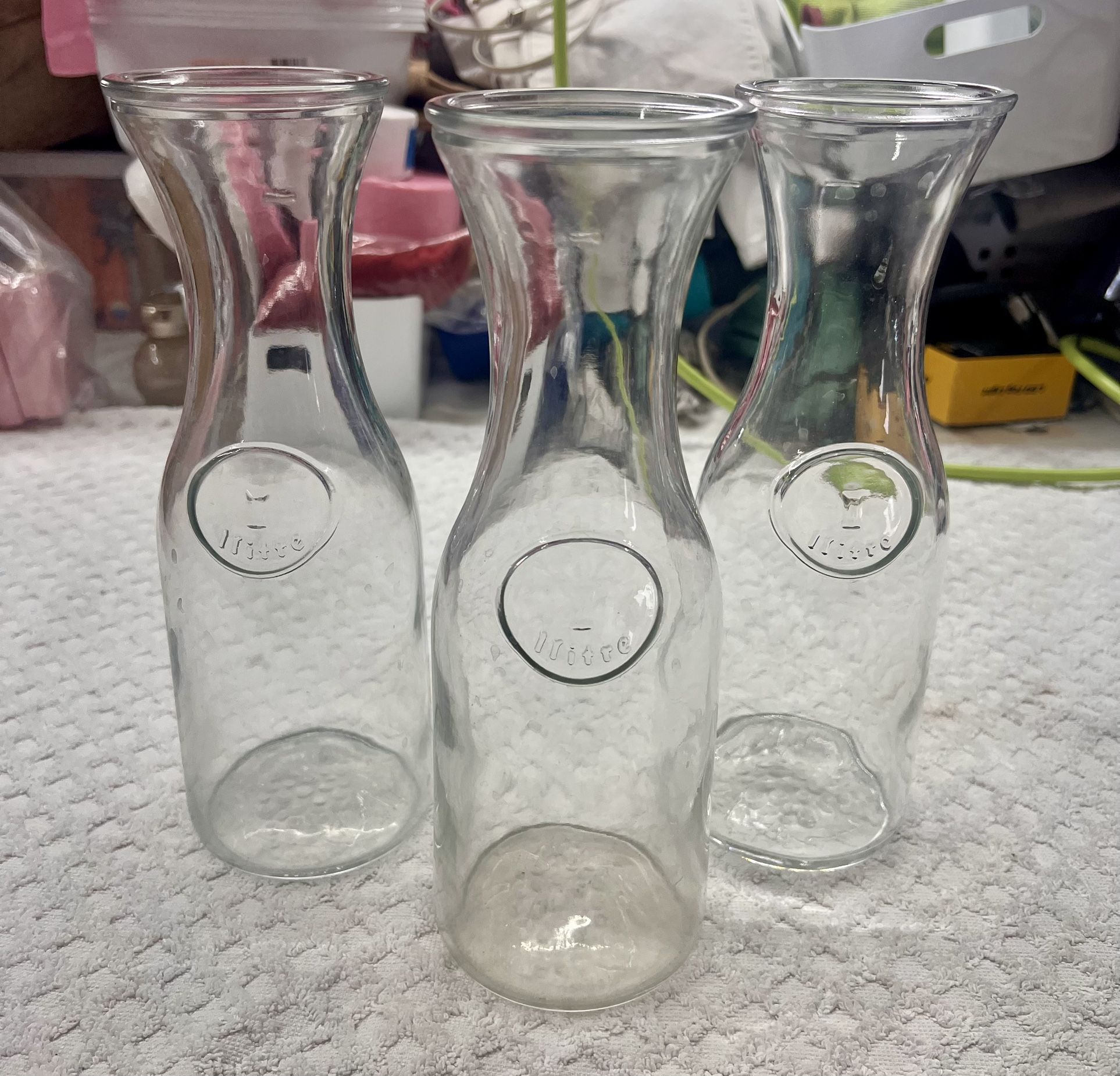 x3 glass carafes in like new condition. No cracks or chips noted. 11” tall x 3.25” diameter. Pick up preferred. I’m located in santee.