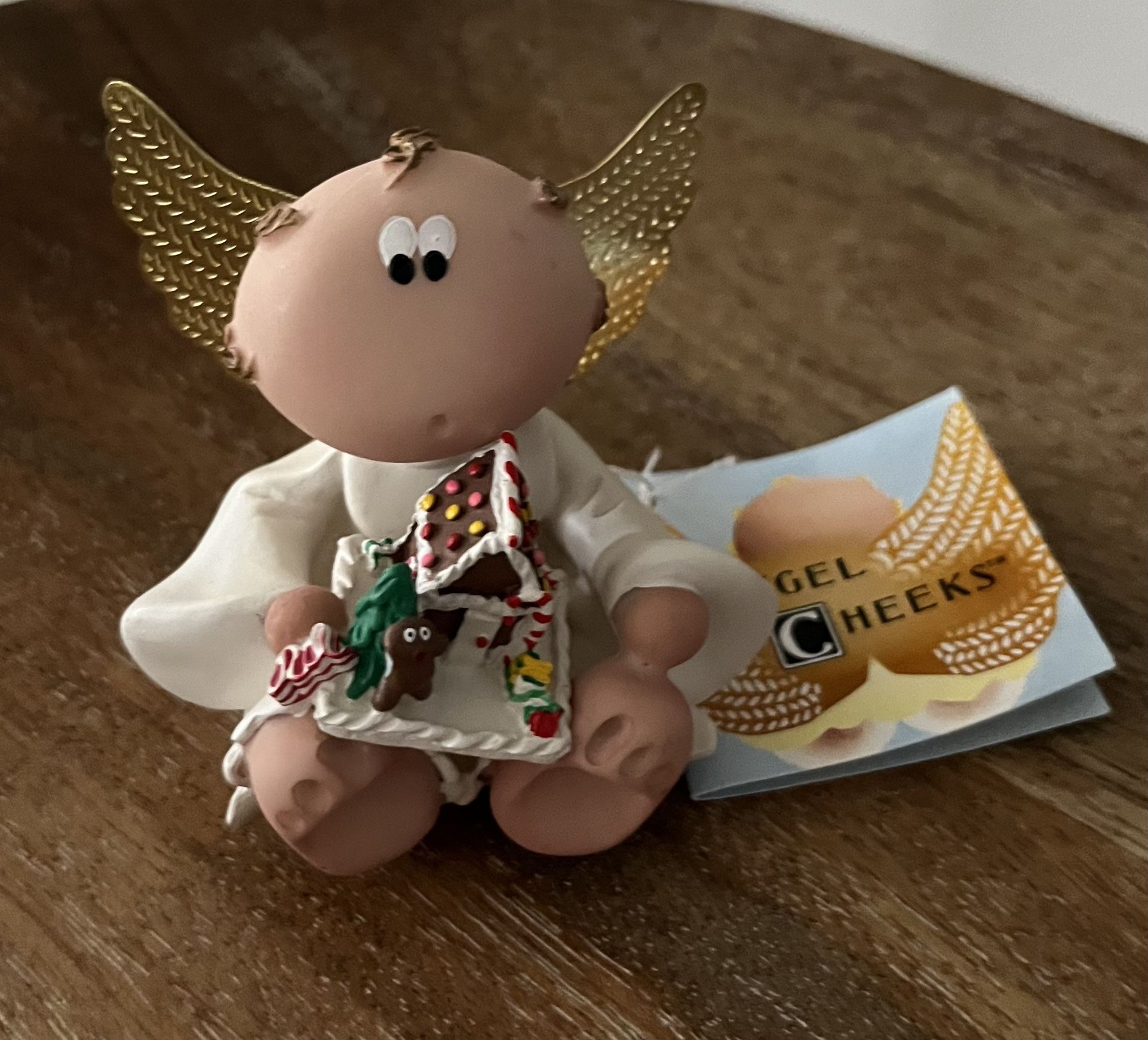 Vintage 2001 Angel Cheeks w/Gingerbread House Figurine and Ornament Ceramic and Porcelain