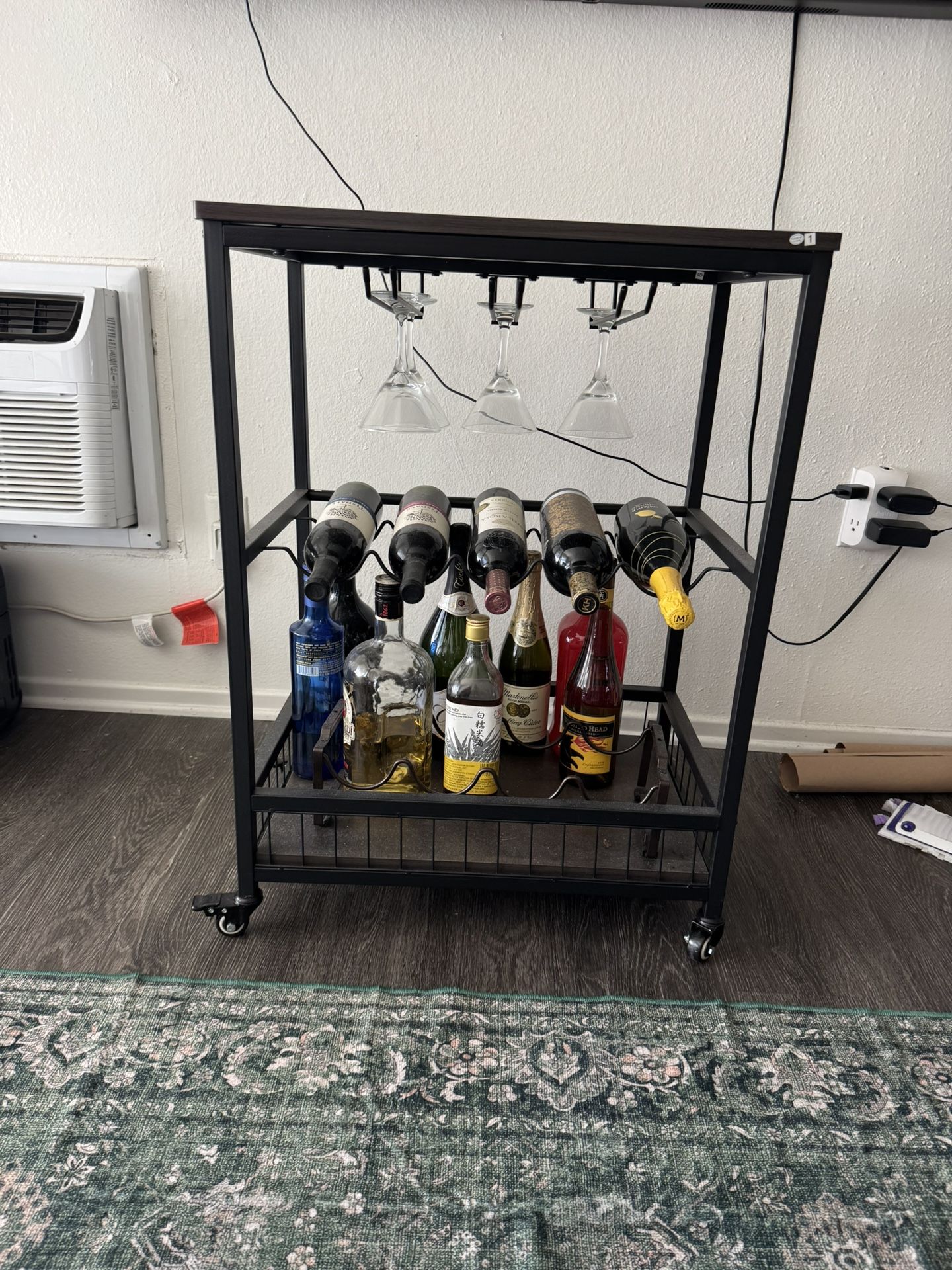 Perfect cart for wine or any beverages, has 3 racks built in to hold glass cups, DM for any questions!