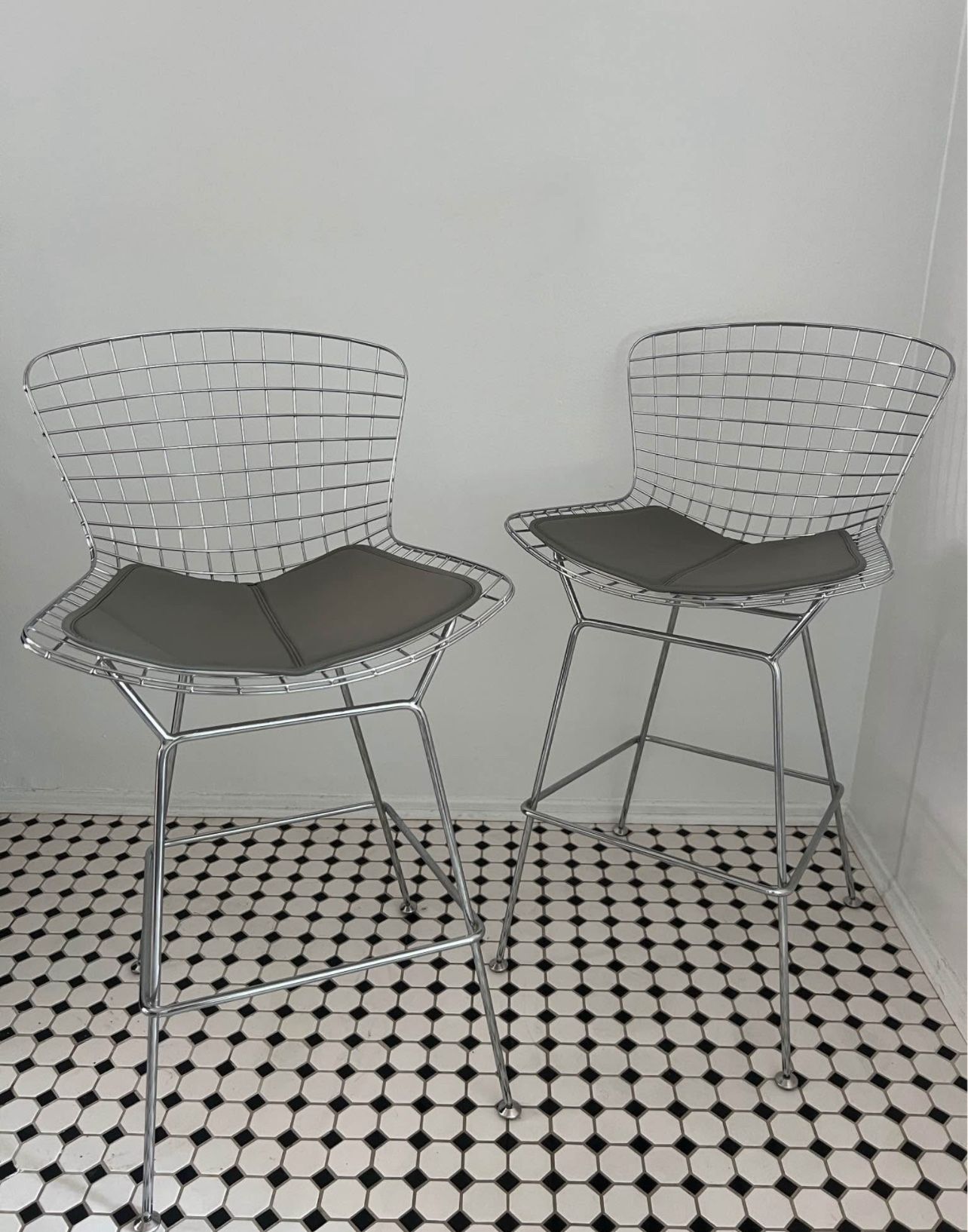 Knoll Bertoia Barstools Replica (Set of 2, Grey Cushions)