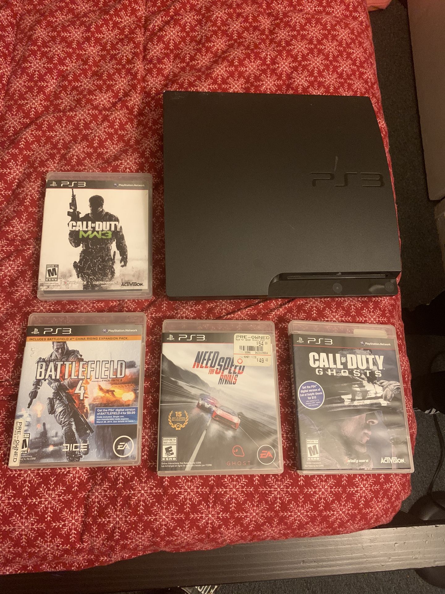 PS3 console with 4 games in good condition Call of duty MW3 Battlefield 4 Need for speed Rivals Call of duty ghost