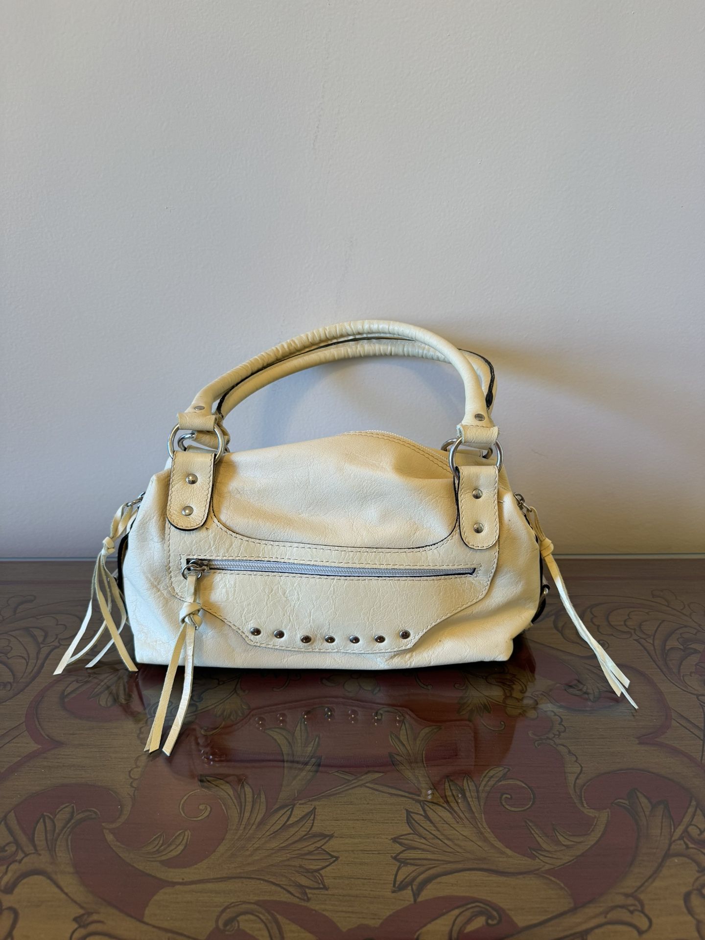 How beautiful are you going to look sporting this one of a kind Vintage, NEVER USED, immaculate leather bag by Regina, MADE IN ITALY! Known for using top quality leathers, materials, and unique embellishments, this manufacturer went over the top with fine construction. The soft yellow color is magnificent. Two zippered compartments on the inside for your valuables, this work of art measures 11”wide by 6” high by 5” deep , and its large handle can easily fit over one’s shoulder. Originally offered for $400.00, then reduced to $225.00, now holiday-priced for $185.00. Proceeds help a hit and run victim. Thanks!