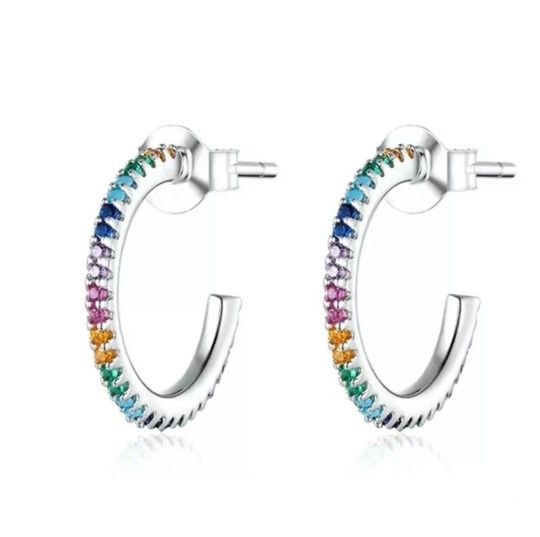 Multi Color Rhinestone C Hoop Earrings Silver Plated Over SS