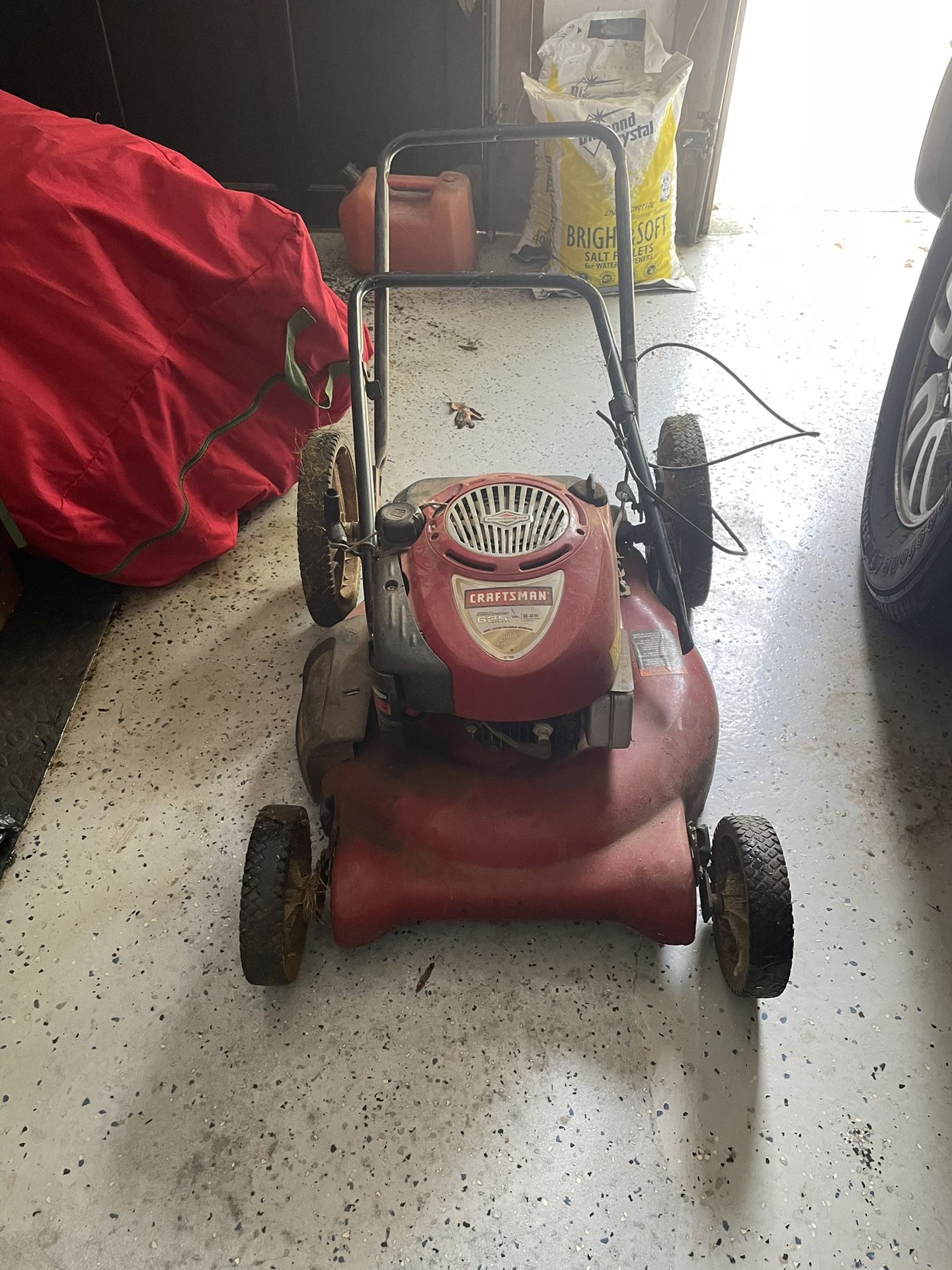 Broken lawn mower, good motor. Trying to get this off me, not needed anymore.
