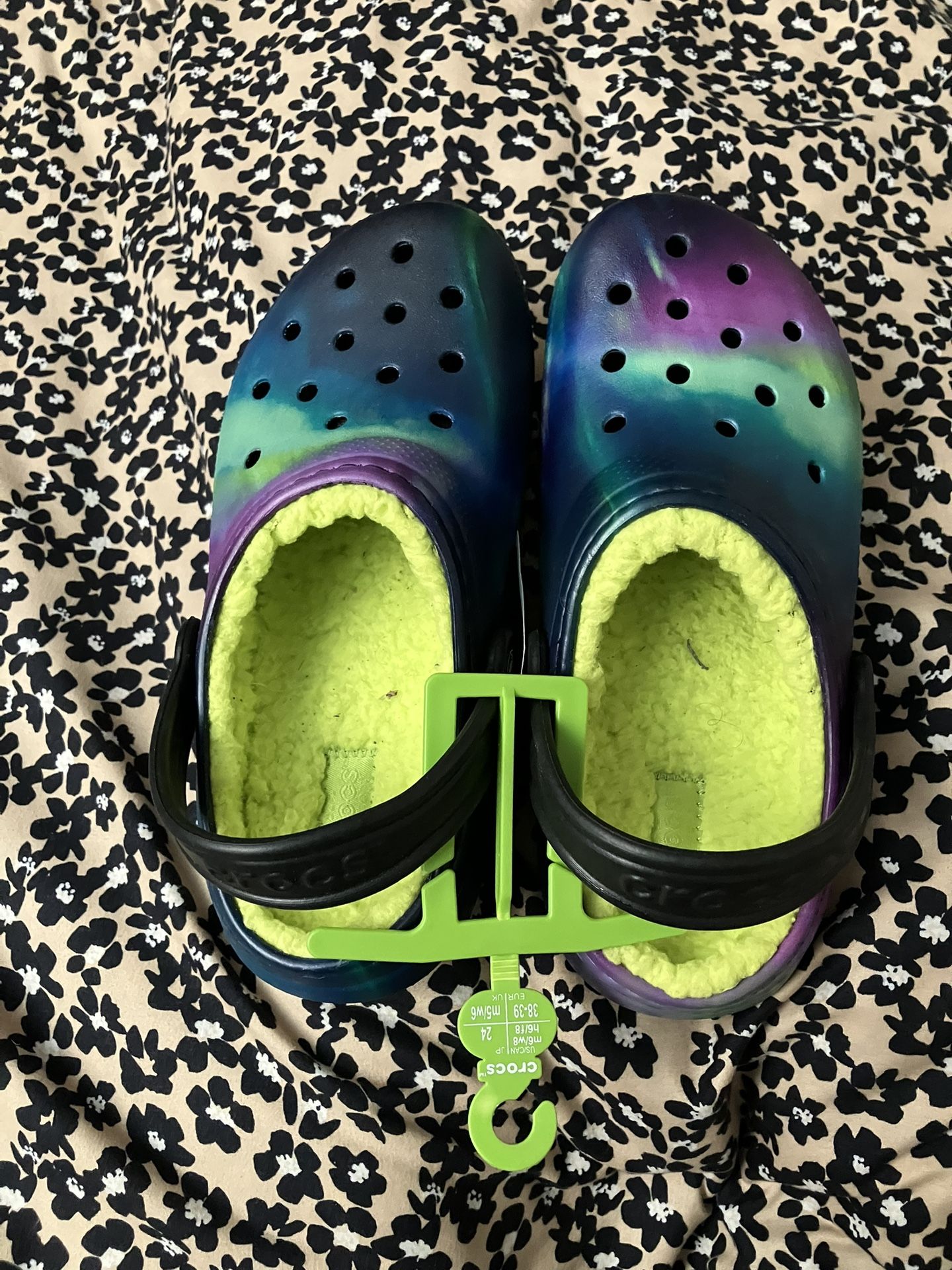 Hello potential buyers I have a pair of Brand New Limited Edition Sherpa Lined Size 2 Kids Crocs. These are a perfect gift for this very cold weather. Message me if interested..