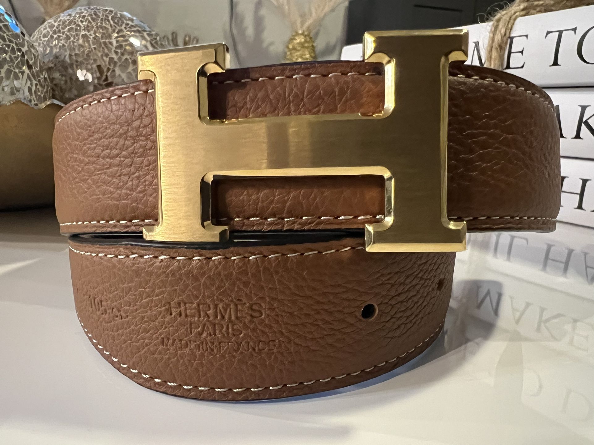 Hermes Brown and Black Leather H Buckle Reversible Belt