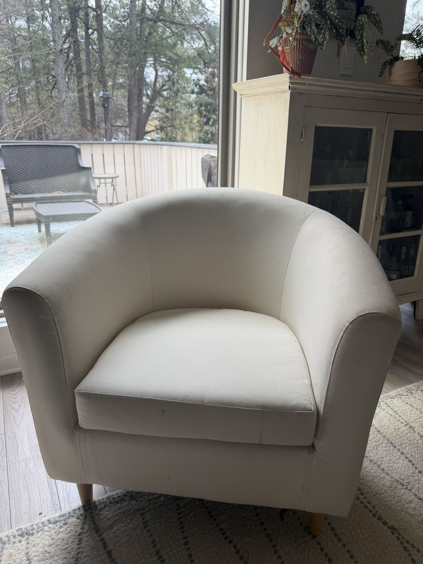 White IKEA side chair— it could use a new cover and does have minor stains.