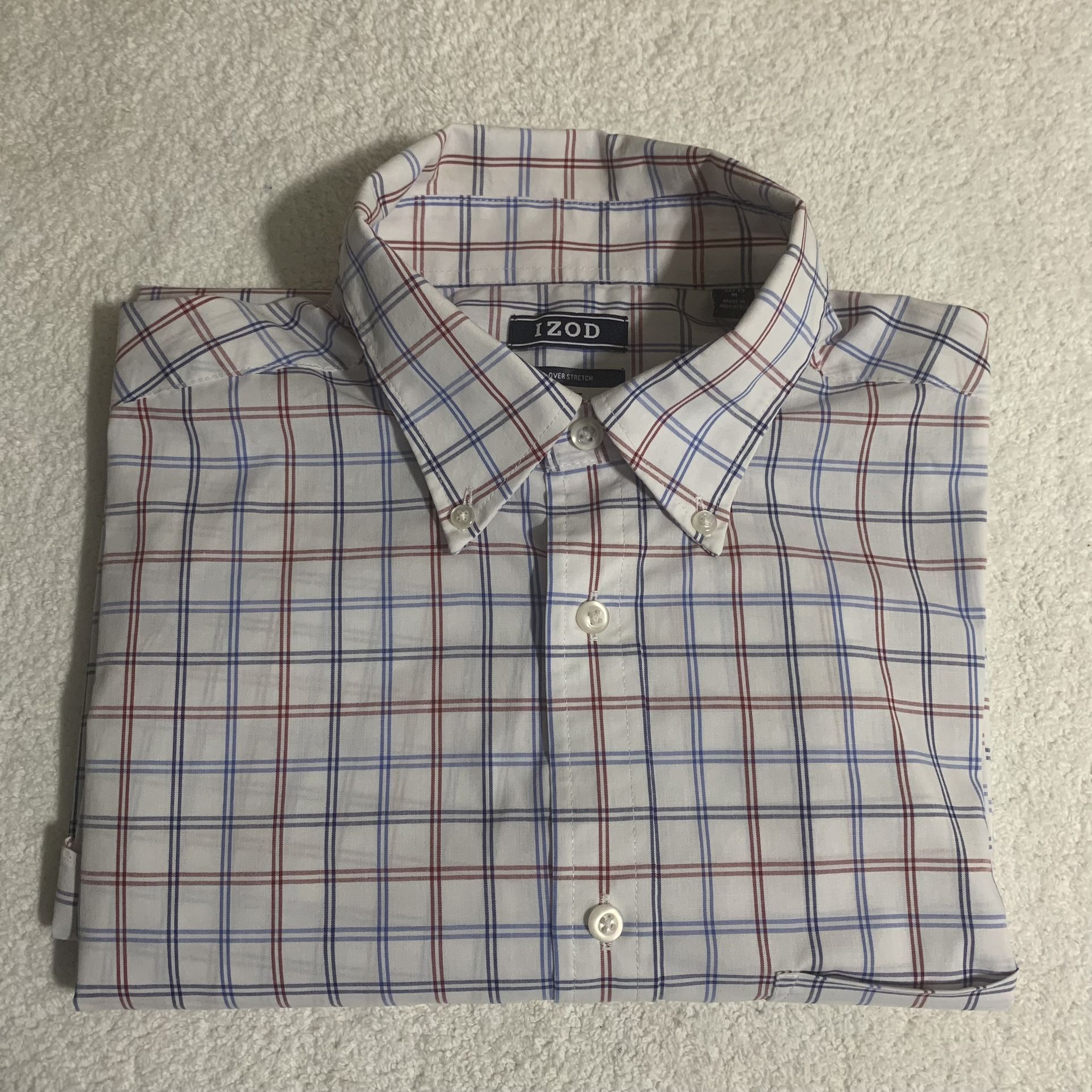 IZOD Premium Essential Mens Long Sleeve Button Up Blue Peach Check Shirt Size M In perfect condition