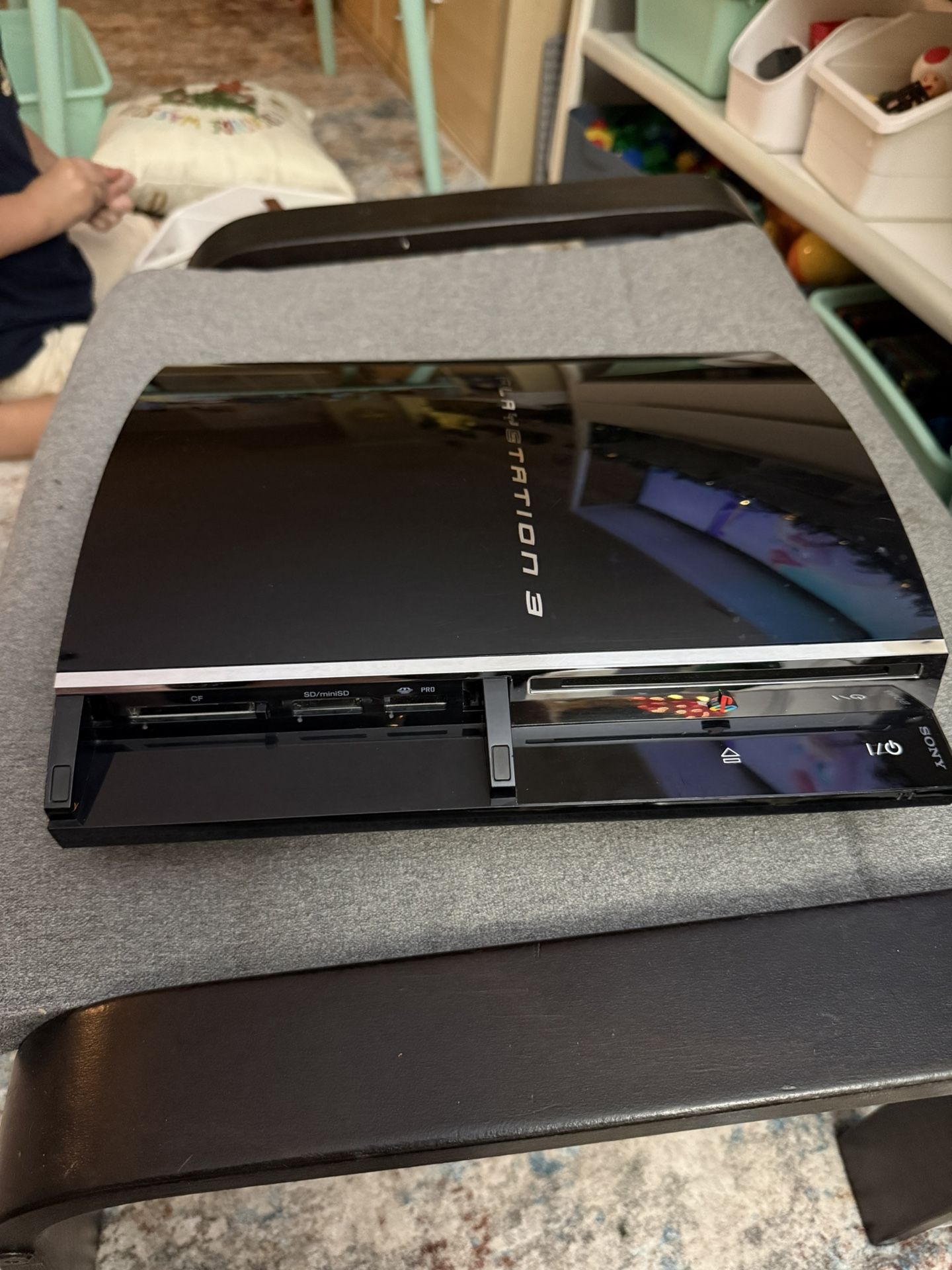 Fully working Backwards compatible 80gb console with controller Console works great for ps1, ps2 and ps3 discs as shown in images. The Blu-ray drive works good as well. A few years ago I disassembled and reposted the console to improve thermal performance, and I also oiled the fan bearing. System has worked great for the 10 or so years I’ve had it. As shown in the images there is cosmetic wear as would be expected on a piano black console that’s on its way to 20 years old( the best I could do to show condition). I think it’d be able to clean up well with some plastic polish and elbow grease. Includes console, power & HDMI cables and a controller which I just installed a new battery into. Feel free to ask any questions and I will consider reasonable offers.