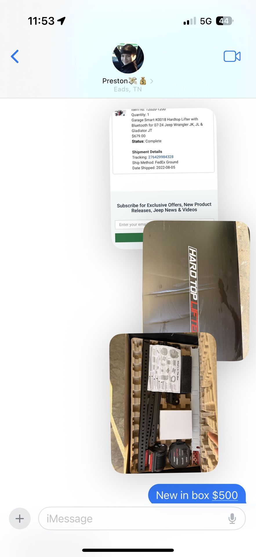 Brand new in box lift hard top for jeep. Original price $679