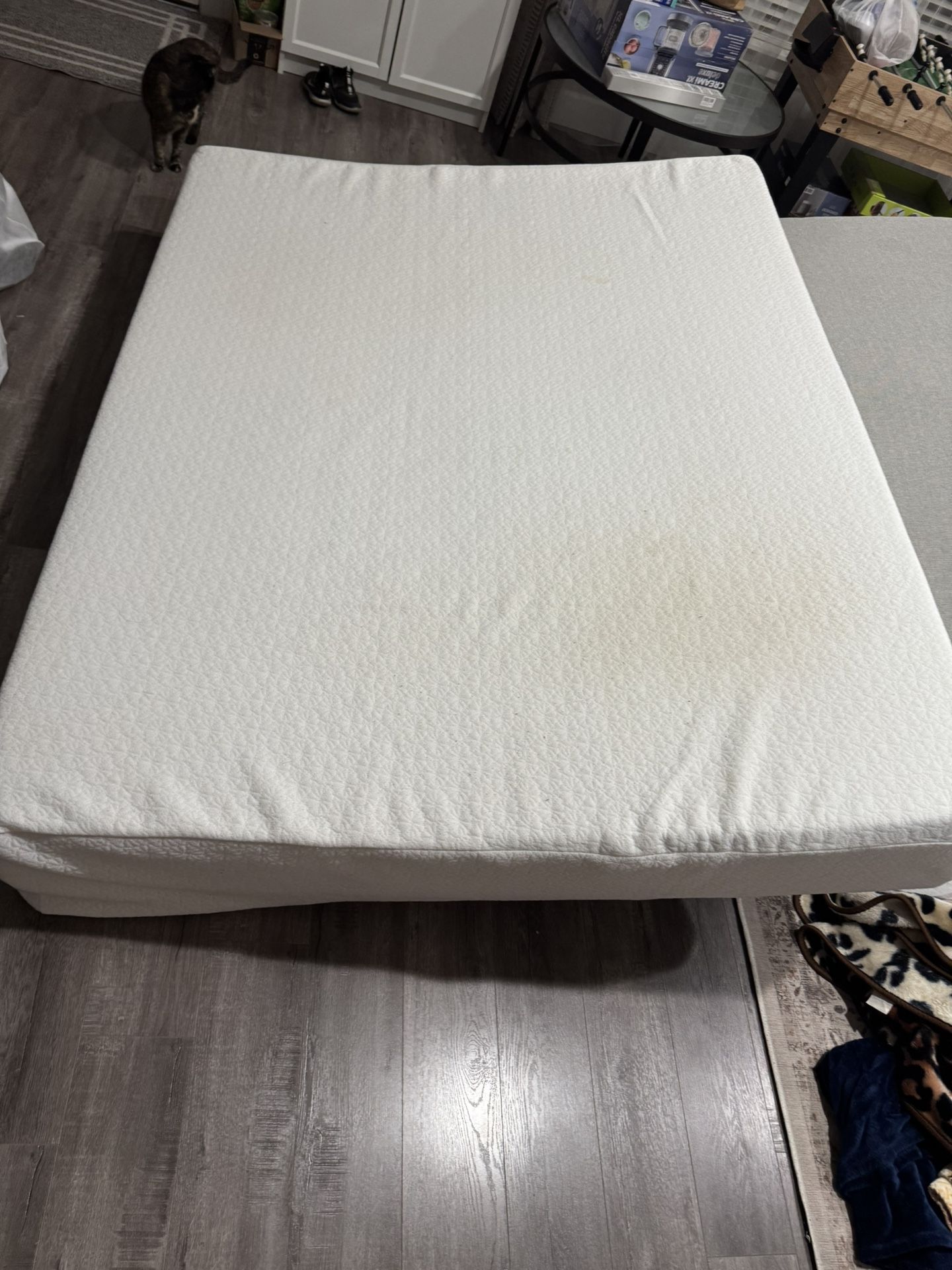 12in thick Was a regular mattress but we cut it down to 75in long to fit the trailer. Pick up Beaverton