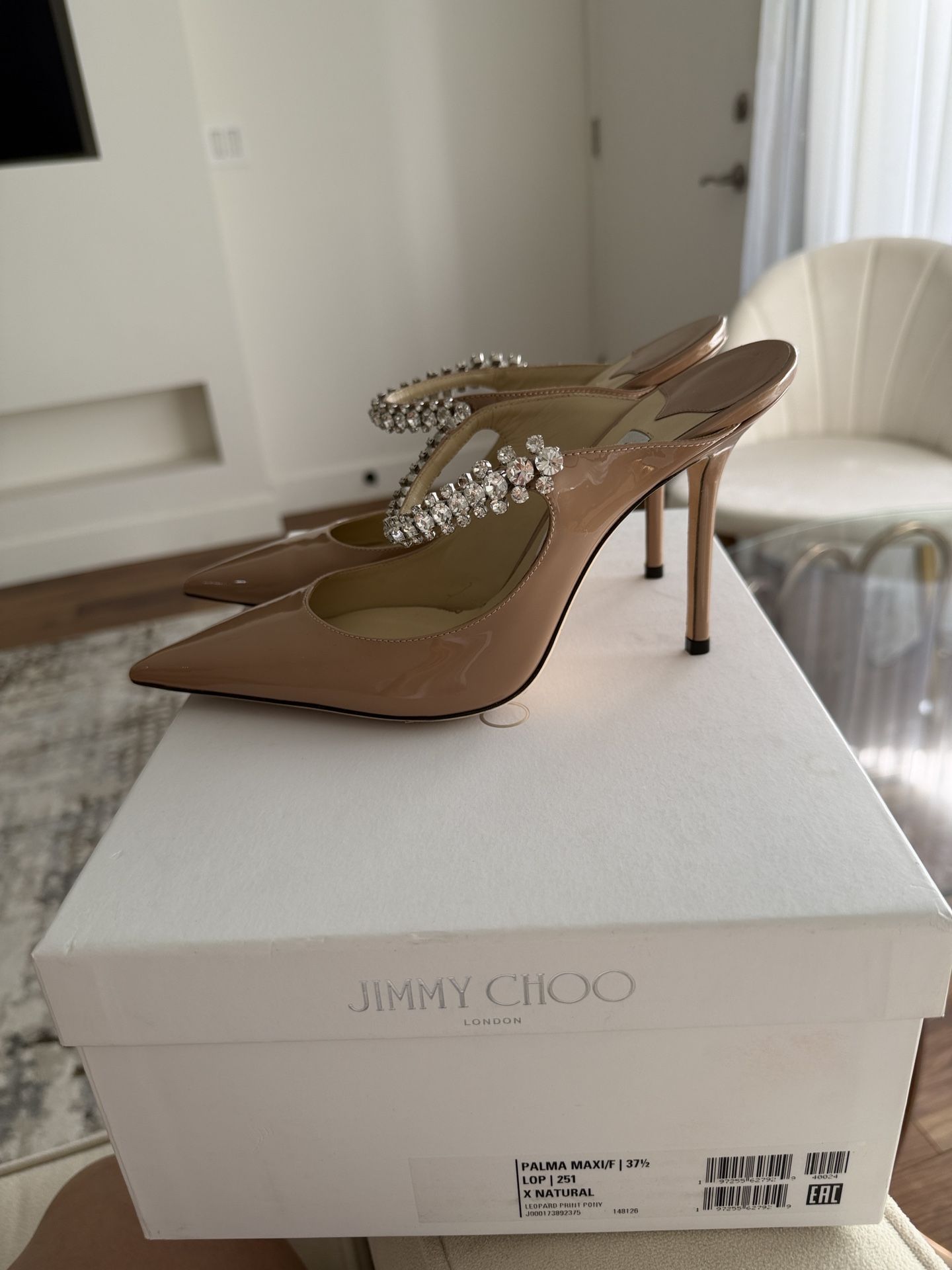 Chic blush heels with sparkling crystal accents. Perfect for elegant occasions.