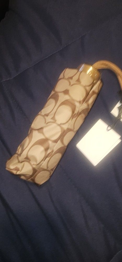 Coach Signature Khaki/saddle Mini UV Protection Umbrella - New with tags
