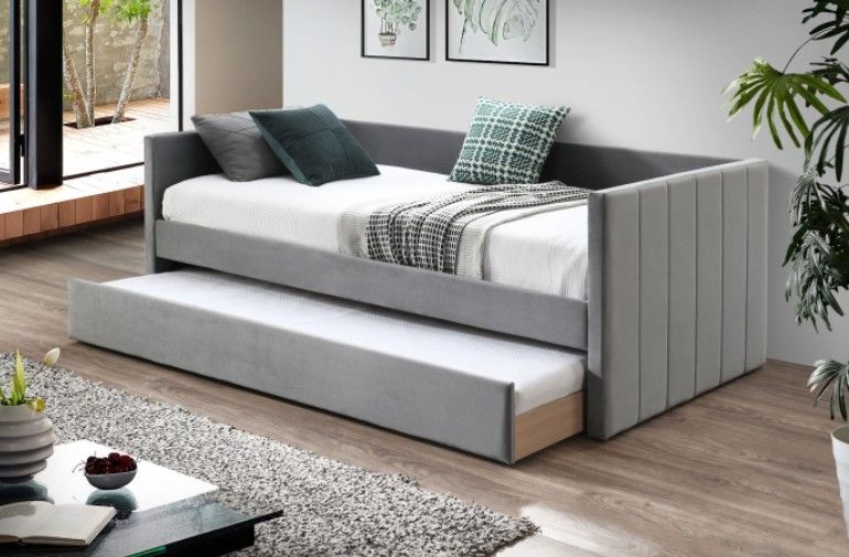 Included: Gray Twin/Twin 1 Daybed w/Trundle Dimensions: SOFA Size: 81.10 x 41.34 x 30.39 in. H (TRUNDLE Size: 75.98 x 39.37 x 11.02 in. H) Materials: Velvet Fabric , Particle Board , Foam , Poplar Wood , MDF 💥Easy financing approval 💥 🔹 Apply doesn't impact your credit 🔹Fast Deliver 🚛 🔹 Hablamos Español 🗣️