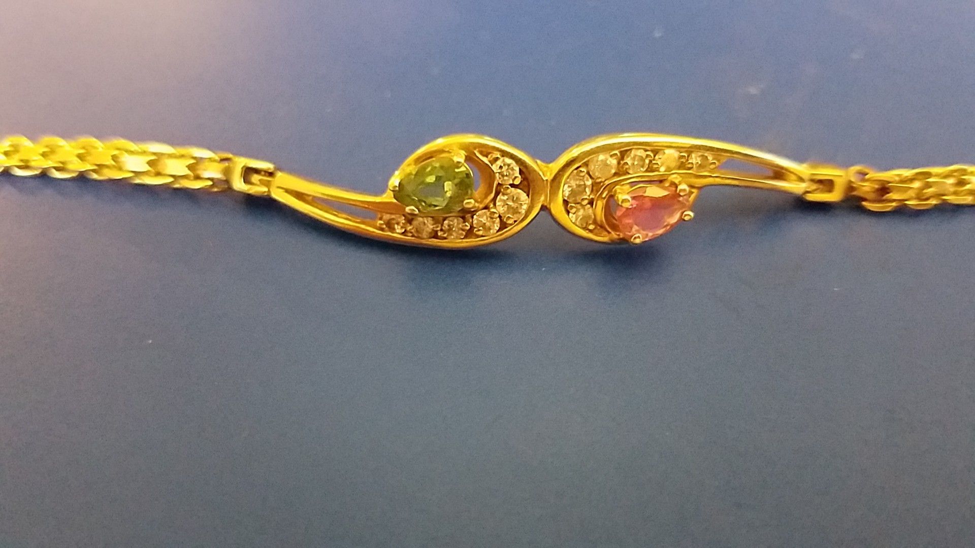 Gorgeous bracelet...solid 14k gold ...custom made with high quality diamonds and a pink and green tourmaline. 7 1/2 inches.