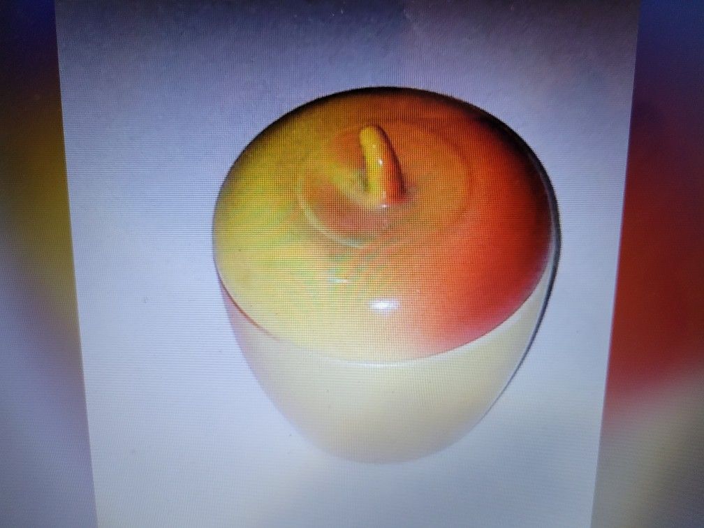 Beautiful vintage Hazel Atlas milk glass apple jam jelly jar with lid. Excellent condition. Holds 6 ounces. Available to pick up in Clovis only any day except Sunday. Cash only please.