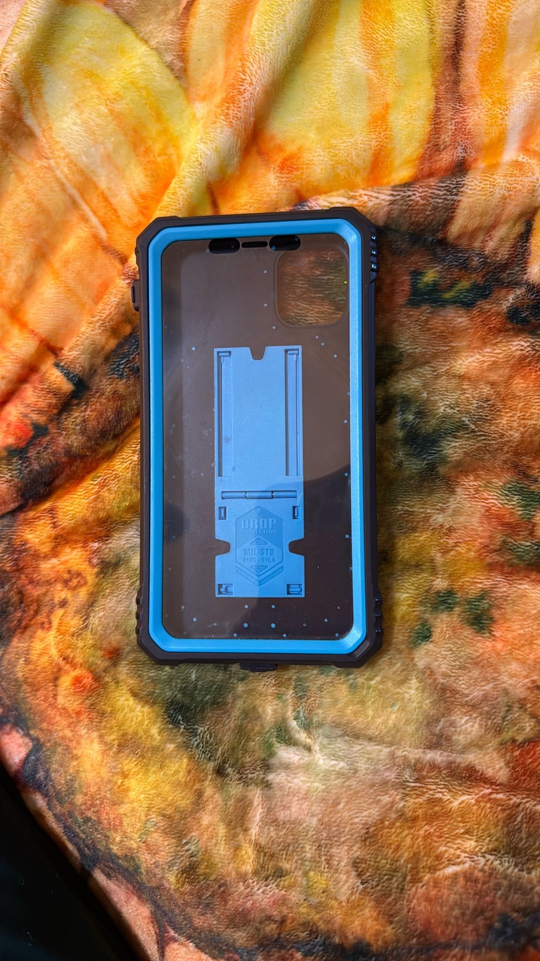 Used but excellent condition. Darker light blue. The phone has a stand as you’ll see in one of the pictures. I upgraded my phone and don’t need it anymore.