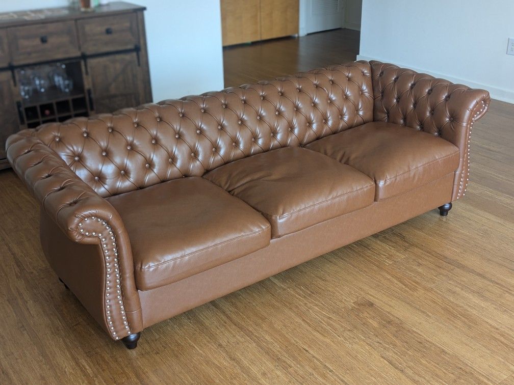 Faux leather couch. 85 inches. Six months old.