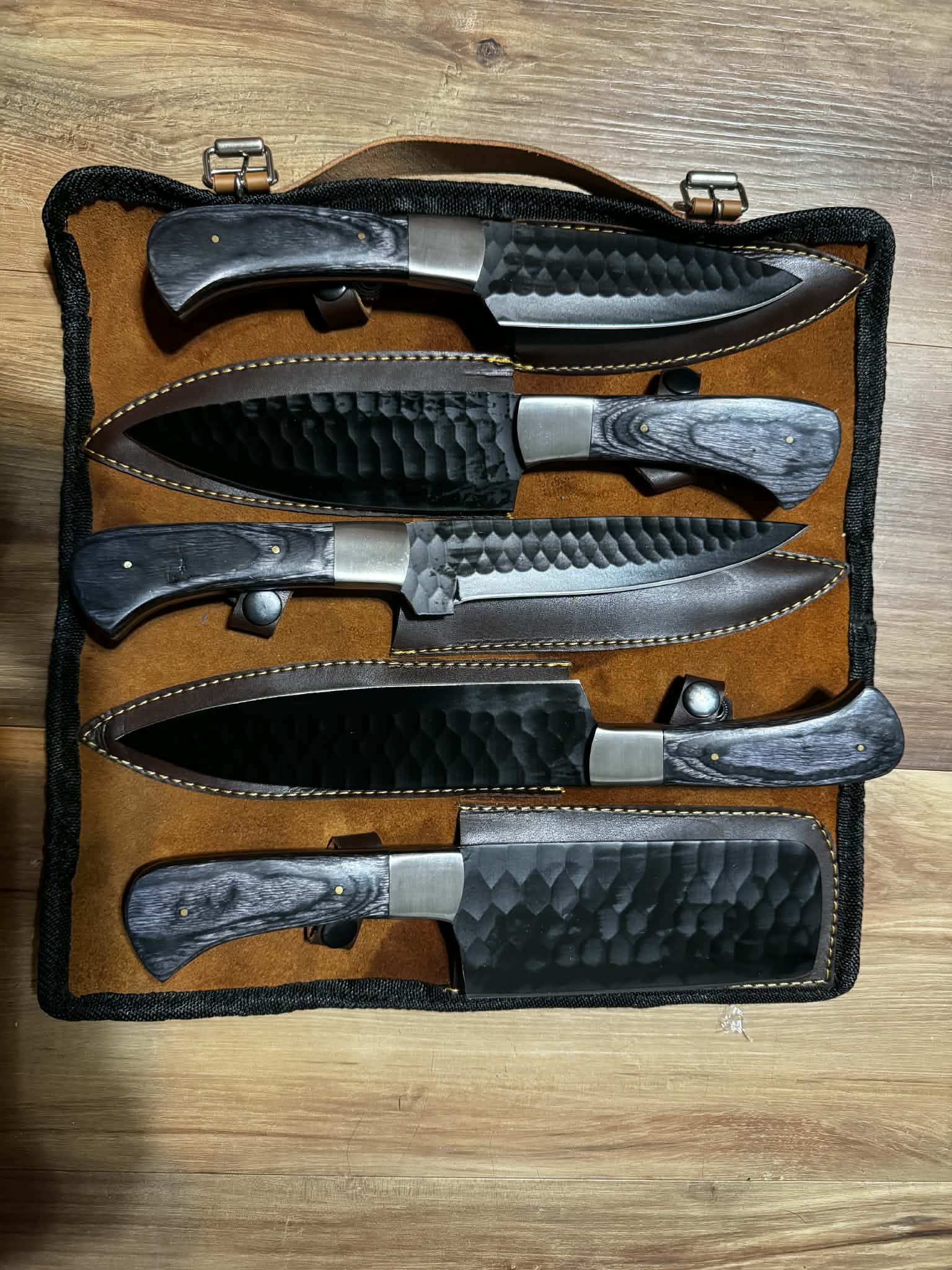 Brand new never used full tang Damascus kitchen sets . Hammered carbon steel and regular Damascus available. Delivery and shipping also available.