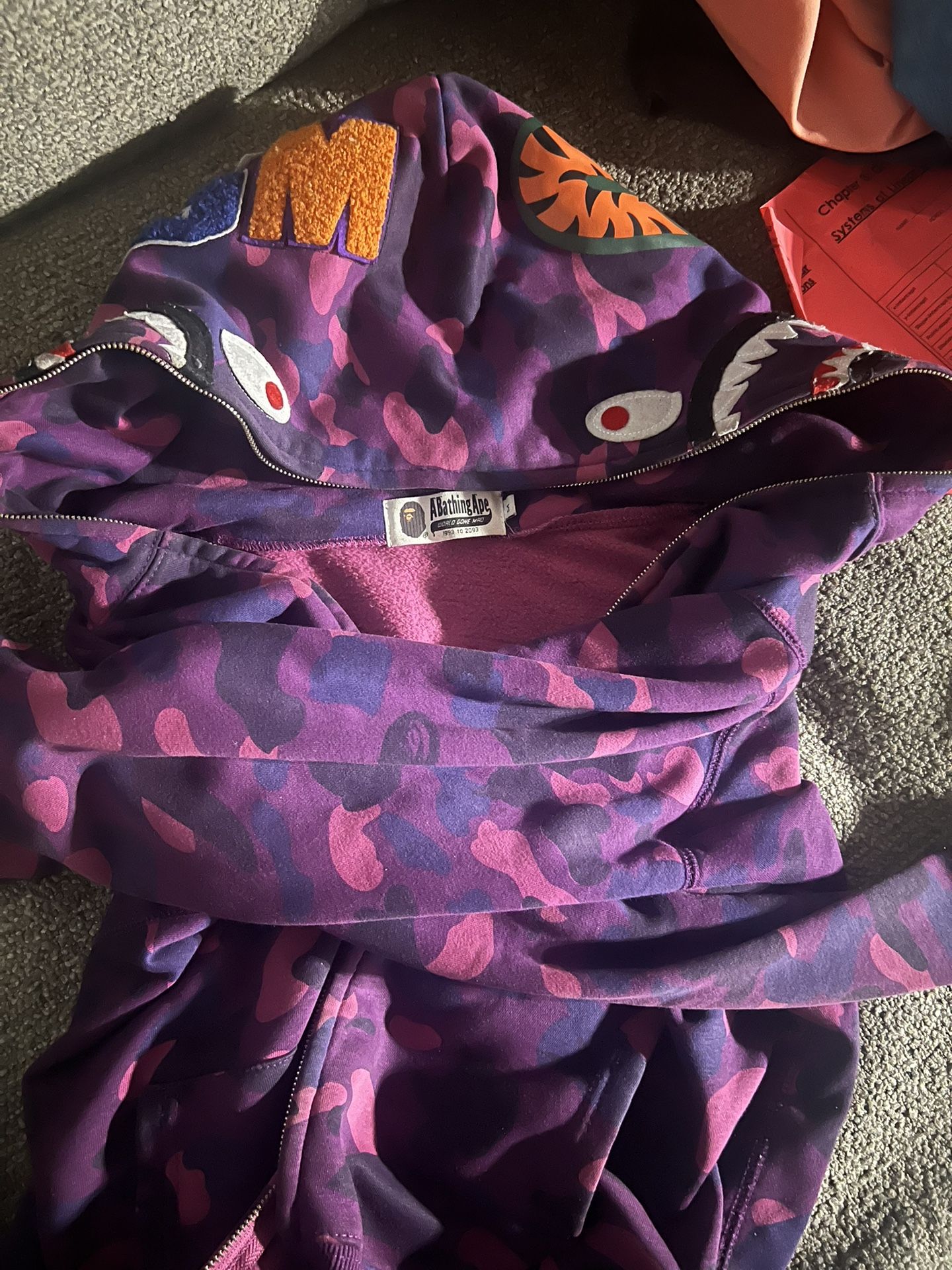 Bape shark hoodie purple camo, best quality 📲 size medium 75$ obo #bape #asaali #hellstar #denim tears #jordans