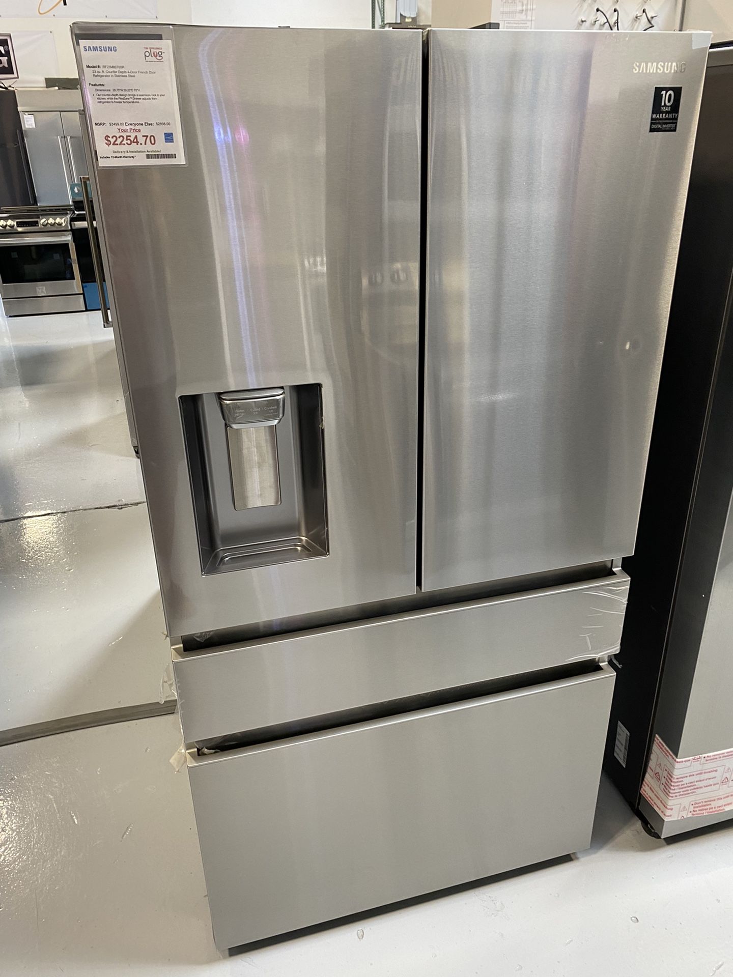 New Open Box Samsung Stainless Steel 23 Cu. Ft. Counter Depth 4-Door French Door Refrigerator Model #RF23M8070SR Dimensions: 35.75”W 29.25”D 70”H Our counter depth design brings a seamless look to your kitchen, while the FlexZone drawer adjusts from refrigerator to freezer temperatures. Includes a 12-month warranty Financing Available Delivery and installation available Contact us with any questions or to stop by to see this unit and others. Open Monday - Saturday 10am - 6pm Our inventory changes daily. Message us for availability.