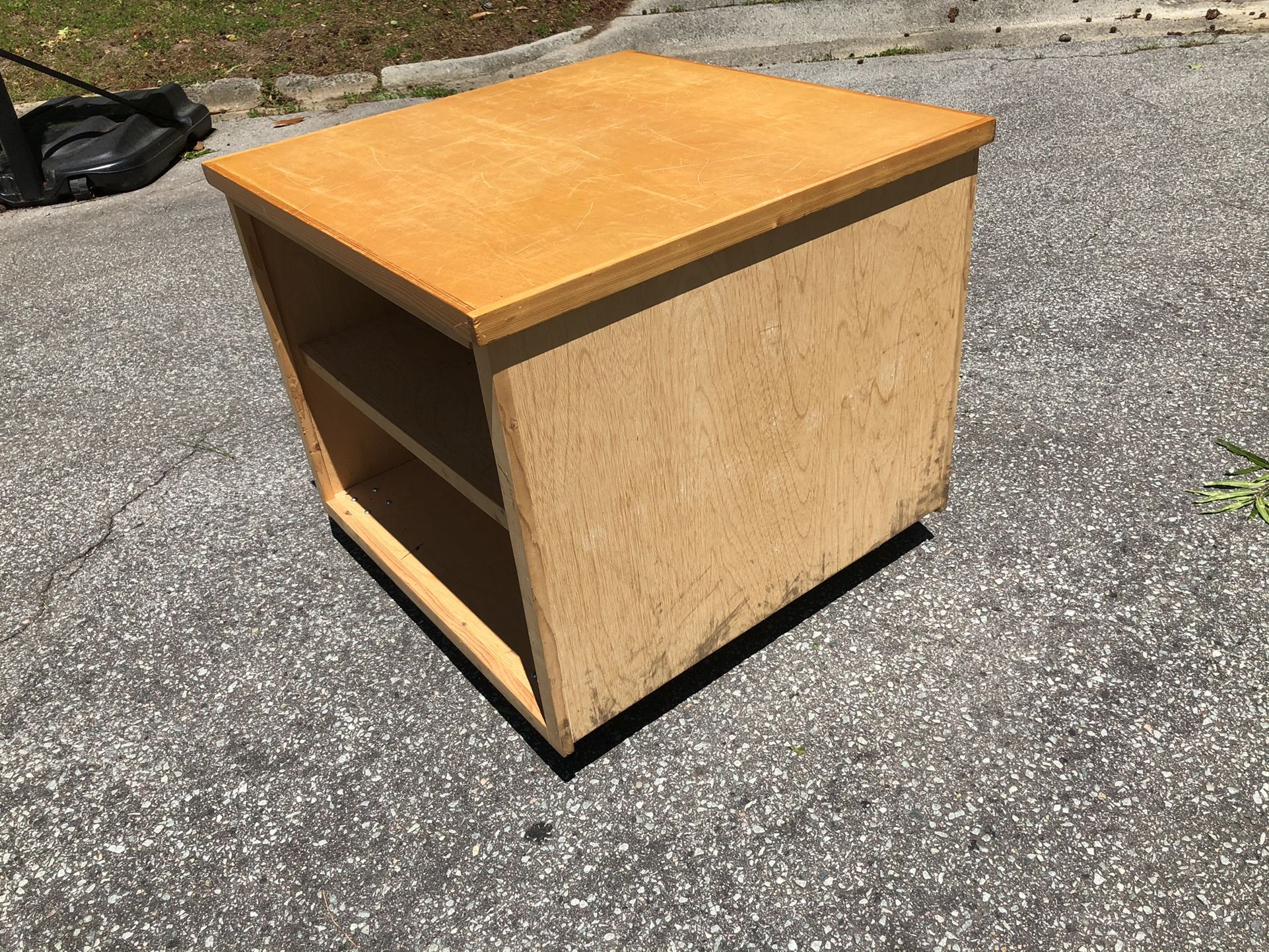 This piece can be used as furniture or for retail display. 31” x 31” and 24” high (28” high including casters) Available for pickup in Chapel Hill