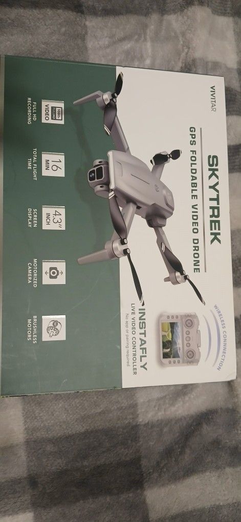 It's a skytrack GPS foldable video drone with instafly live video controller no app or pairing required has motorized camera a 4.3 " inch screen display the total flight time in 16 minutes has a full HD recording and brushless motors asking for $80 its worth more , i i opened it out of the box but never used it