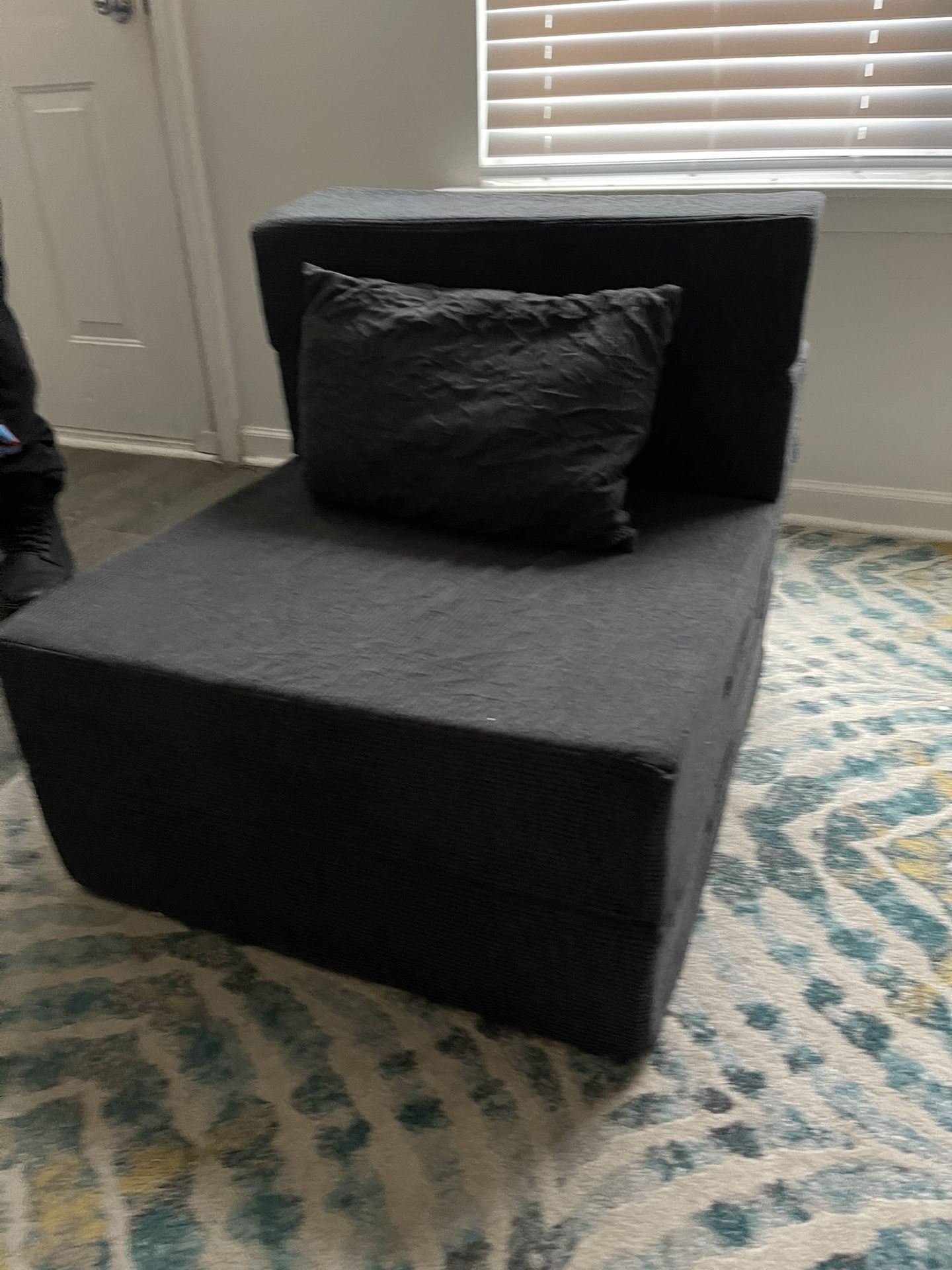 Folding chair that easily converts into a lounger or full bed. Great for small spaces, guests, gaming, or lounging. Super comfortable with thick foam and includes back pillow. 3 modes: chair, lounger, bed Bed size: 76” L x 26” W Condition: Like new, clean, no damage Perfect for apartments, dorms, or guest rooms. Local pickup in Charlotte. Cash, Zelle, or Apple Pay.