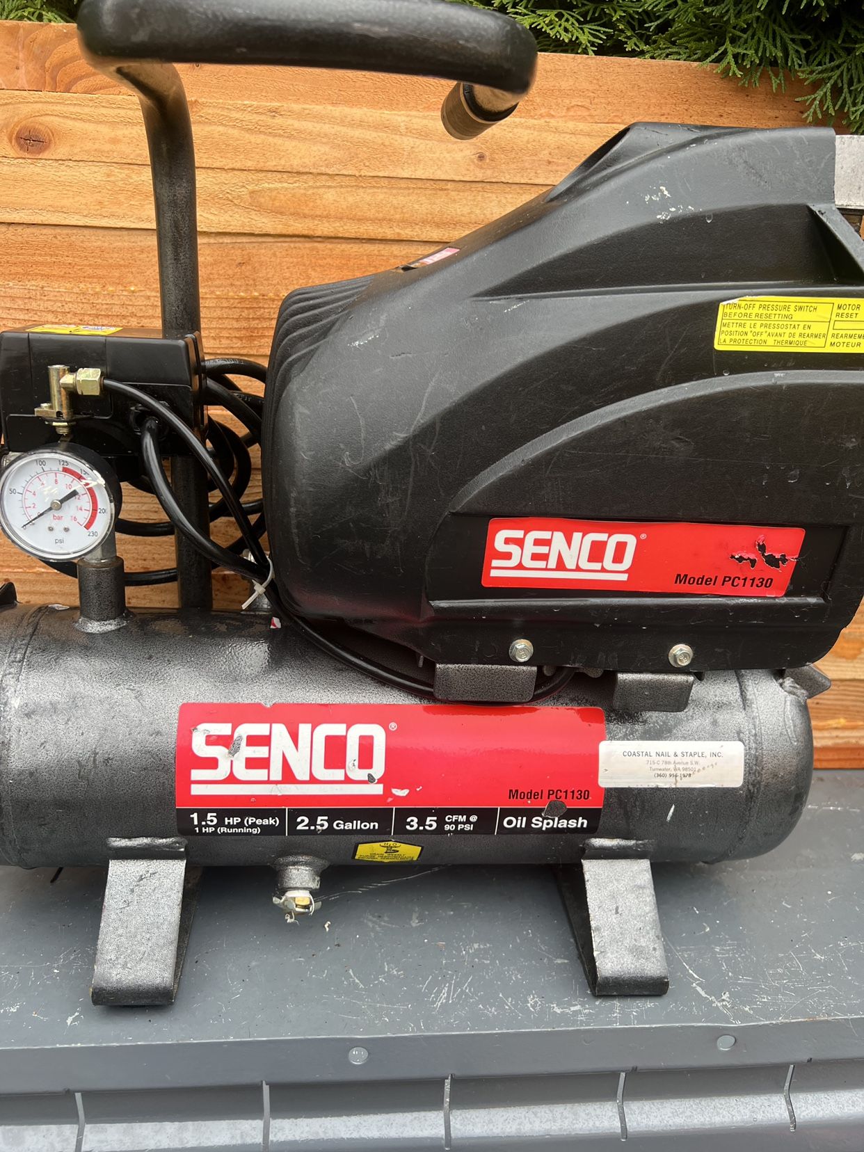 SENCO PC1131 2.5 HP 4.3 Gallon Oil-Lube Twin Stack Air Walmart sells this one for $437. This is one fabulous air compressor lightweight powerful reliable the last air compressor you’re ever going to need for finish millwork and finish carpentry This is not a Makita Ryobi Milwaukee or Dewalt this is the company that makes the air compressors for other companies that private label this is Cenco the Harvard of air compressors These tools are used to belong to dad dad has passed away.