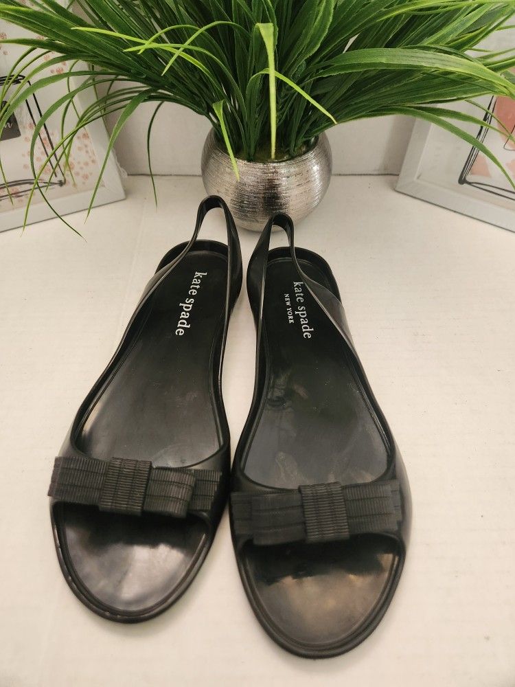 Kate Spade New York Bow Jelly Slingback Sandals Size 6 Black Shoes
