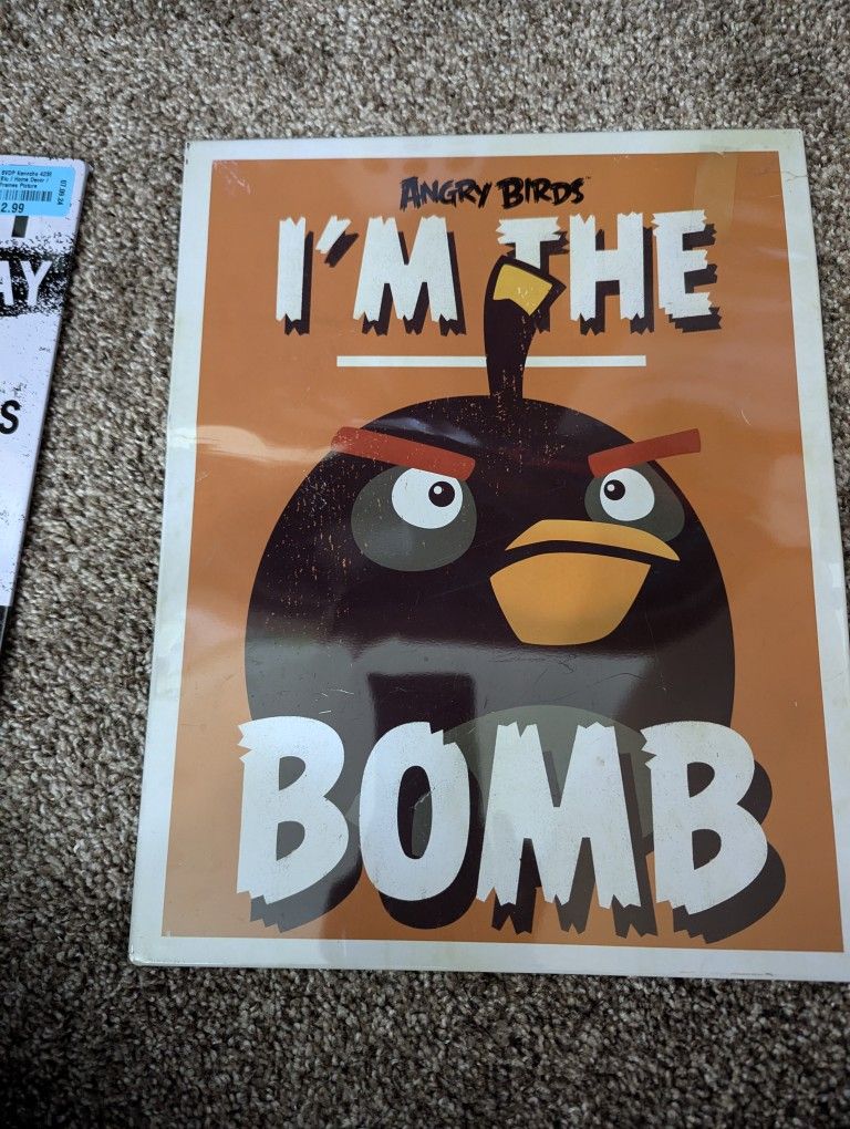 Angry birds theme It is made of tin Approx 14 in height and 11 in wide It is used (as you can tell by the pic) But good condition
