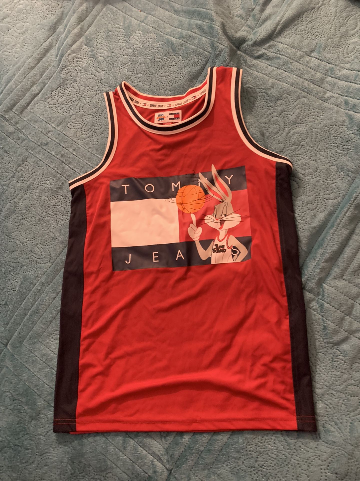 Space jam: A New Legacy X Tommy Jeans bugs bunny. Boys Medium 12/14. Red, Navy blue, white. Tank/jersey. Used once. I’m great condition.