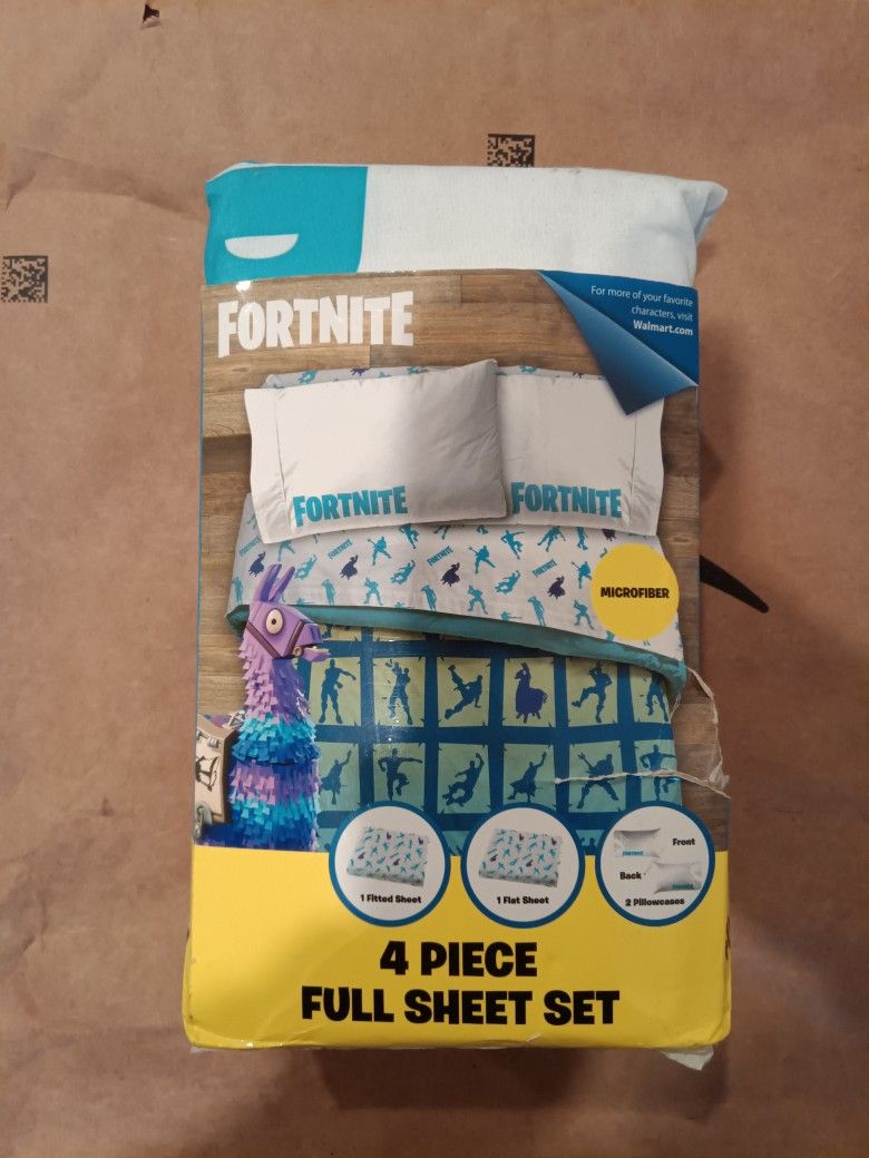 Fortnite Boogie Kids 4-Piece Full Sheet Set, New