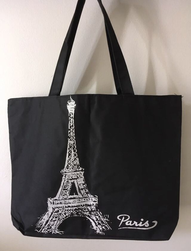 Black Paris Canvas Tote includes inside zipper pocket & zipper closure. Measures 16” x 3.5” x 12.” NWT.
